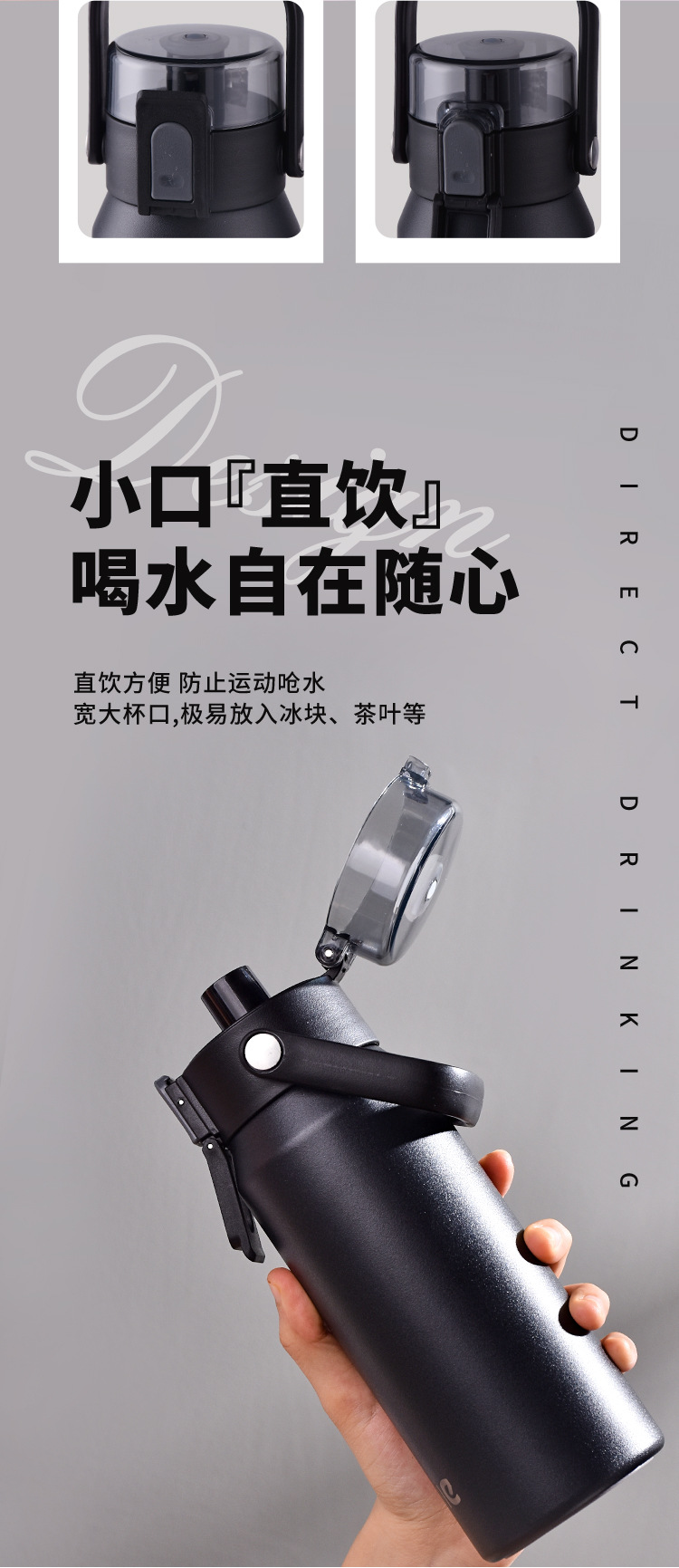 希楽屋外携帯弾蓋ステンレス保温カップシンプル新型男女大容量保温保冷カップ