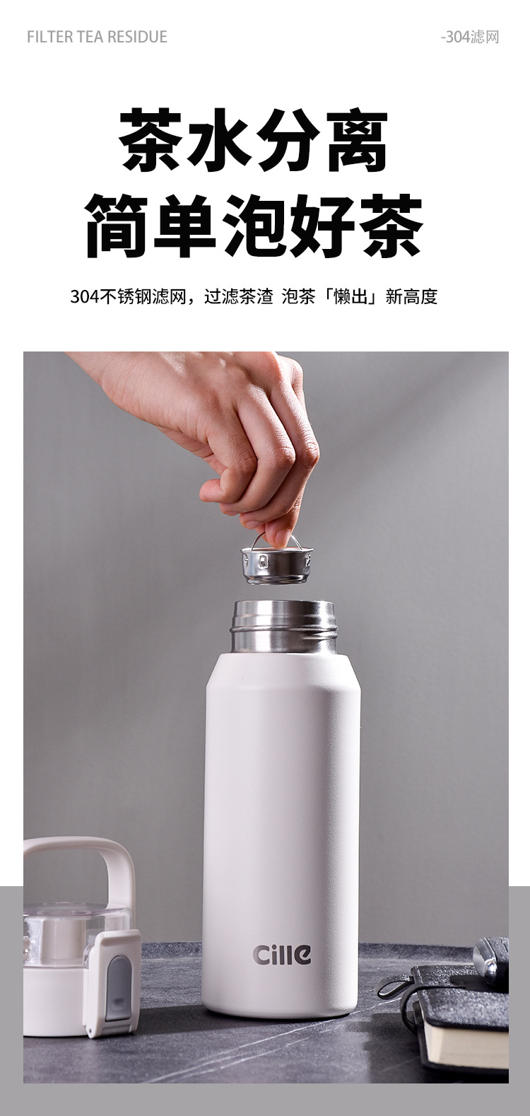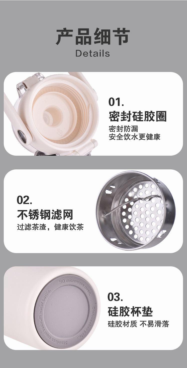 希乐保温カップ 316ステンレス製 ポータブル保温水筒 家庭用/職場用 ハンドル付きカップ ギフト用 茶水分離