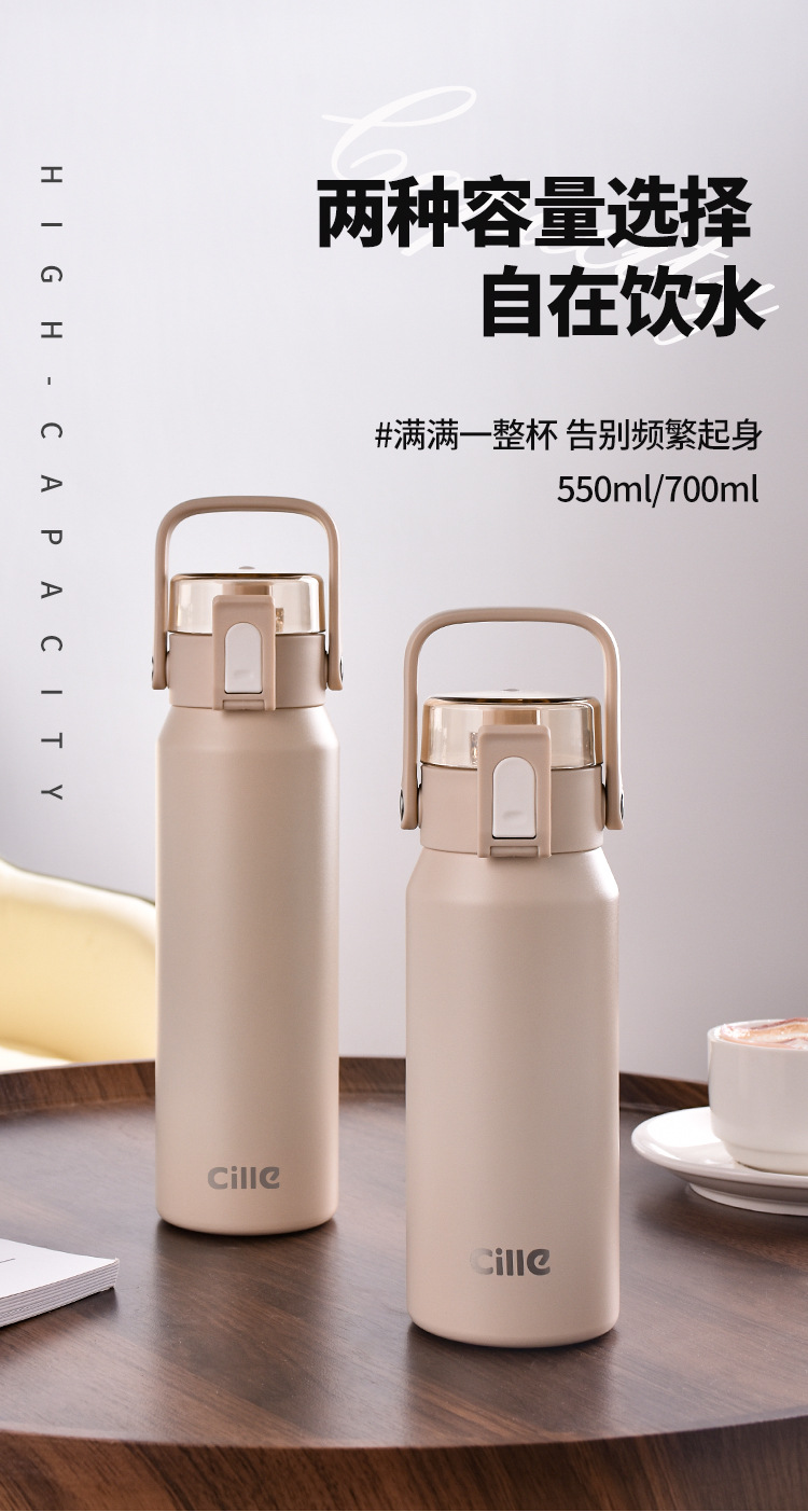 希乐保温カップ316ステンレス鋼男女兼用アウトドアスポーツウォーターボトル家庭用保温ボトルハンドル付きホリデーギフト