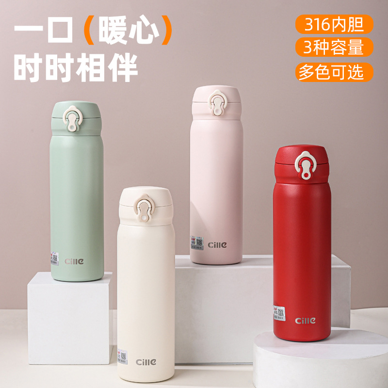 希楽保温カップ男女学生カバンコップ高颜値316ステンレス直飲口運動戸外コップ