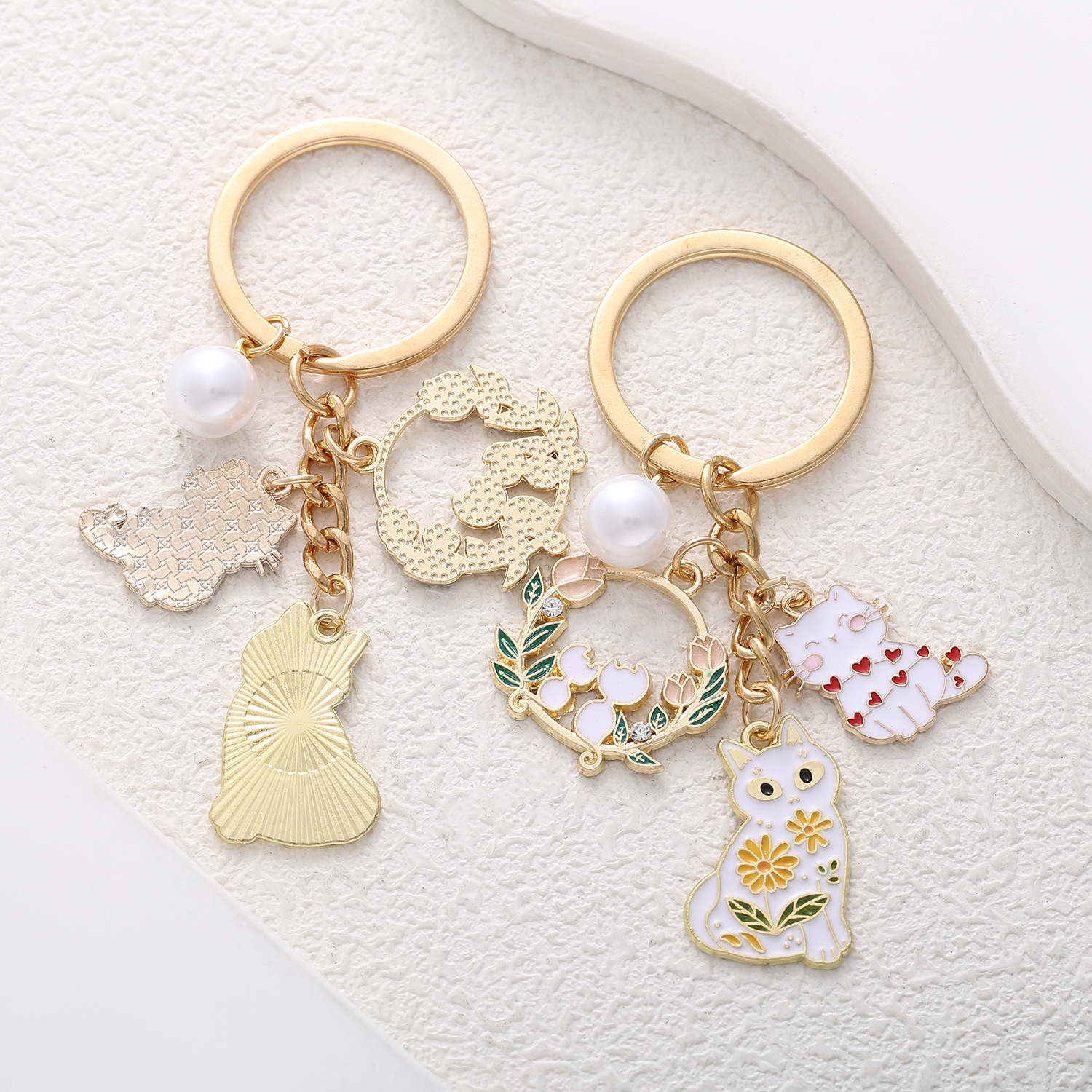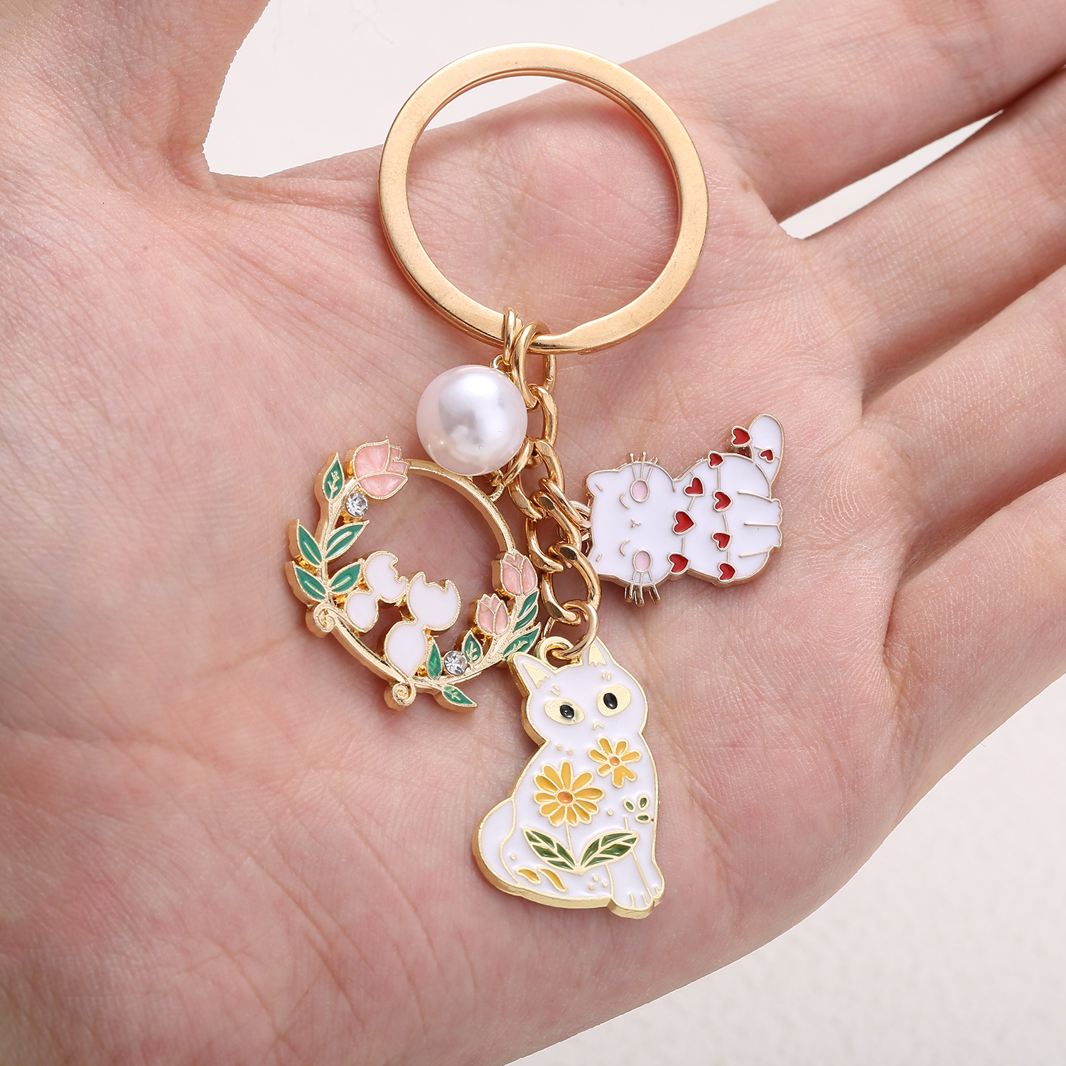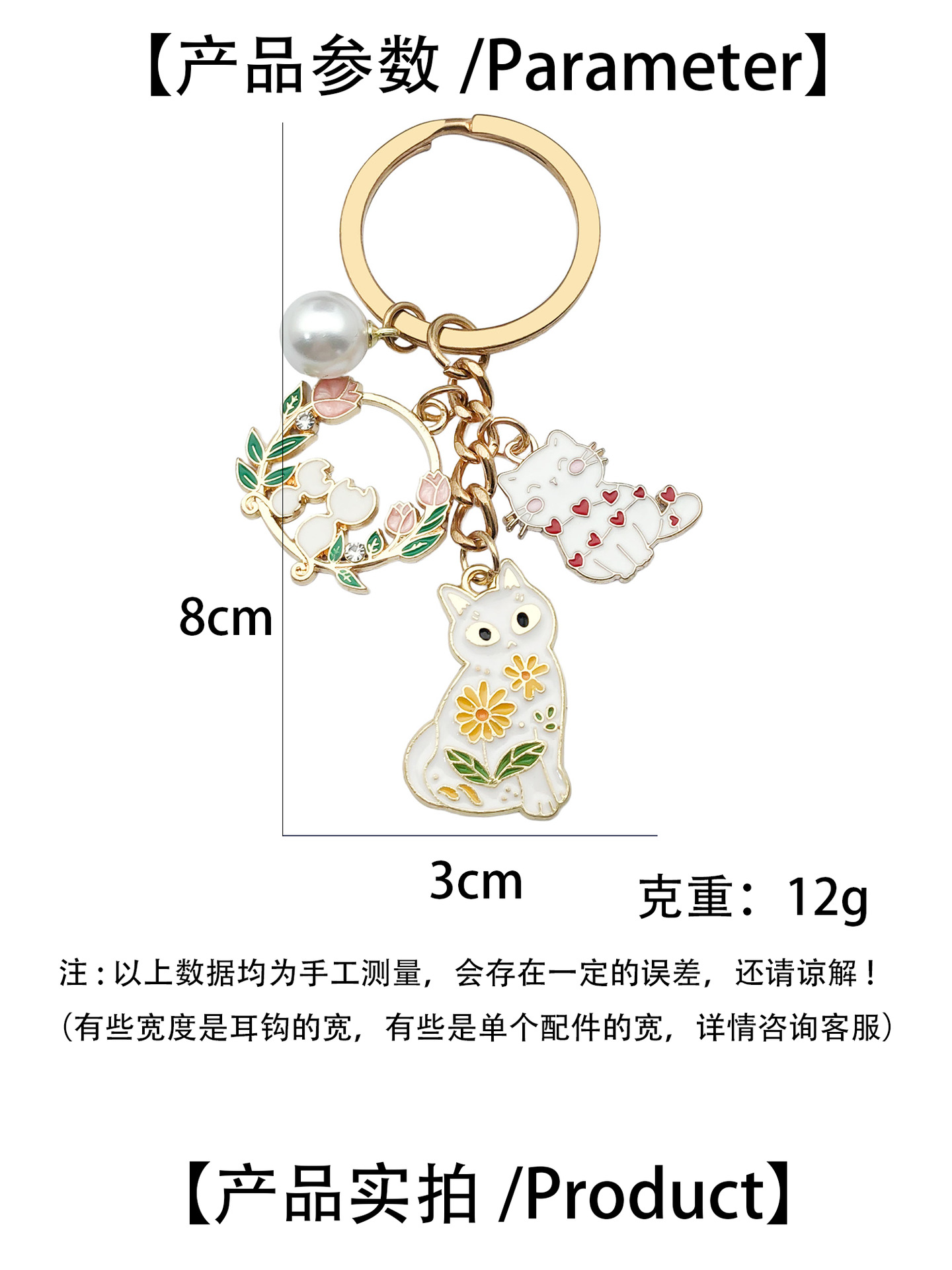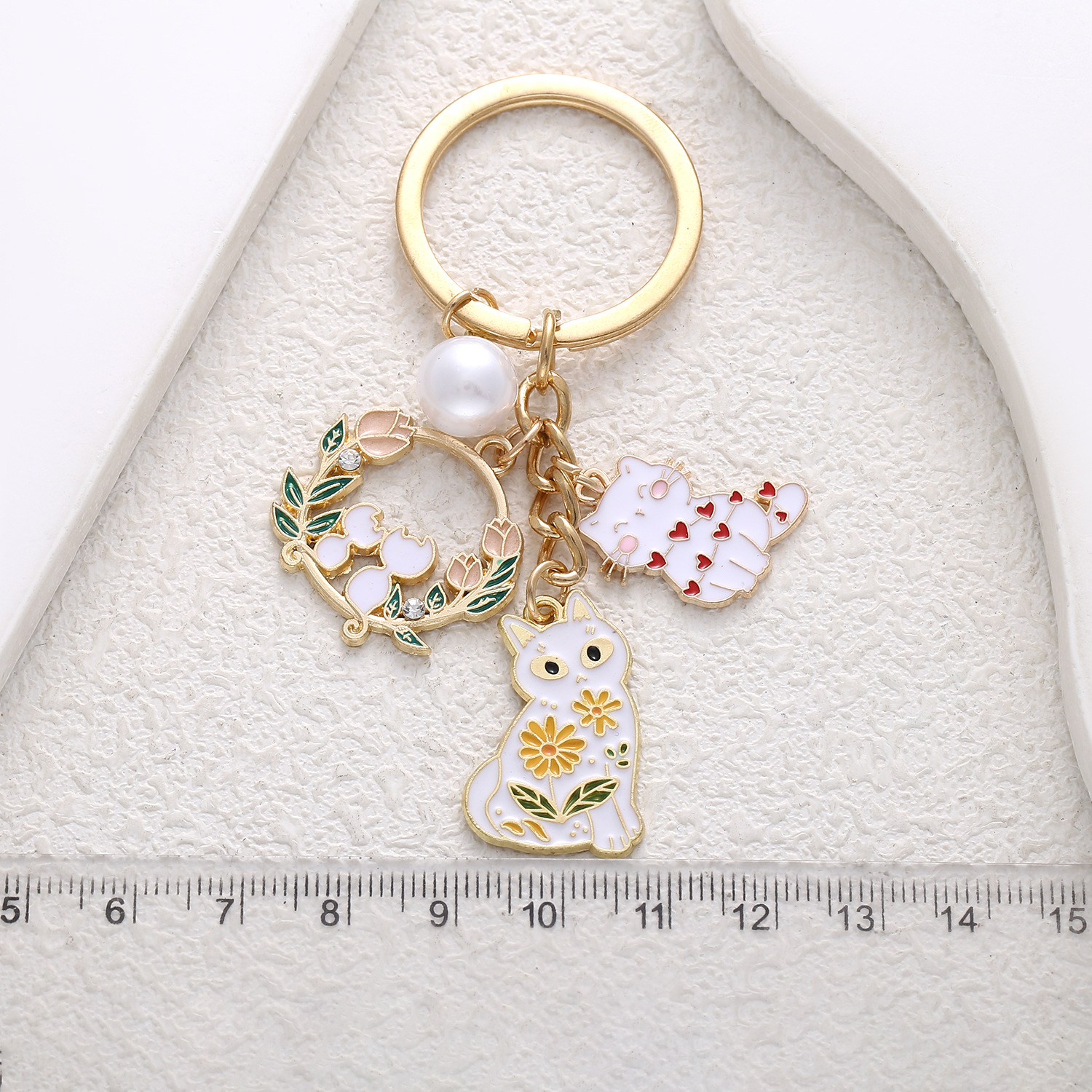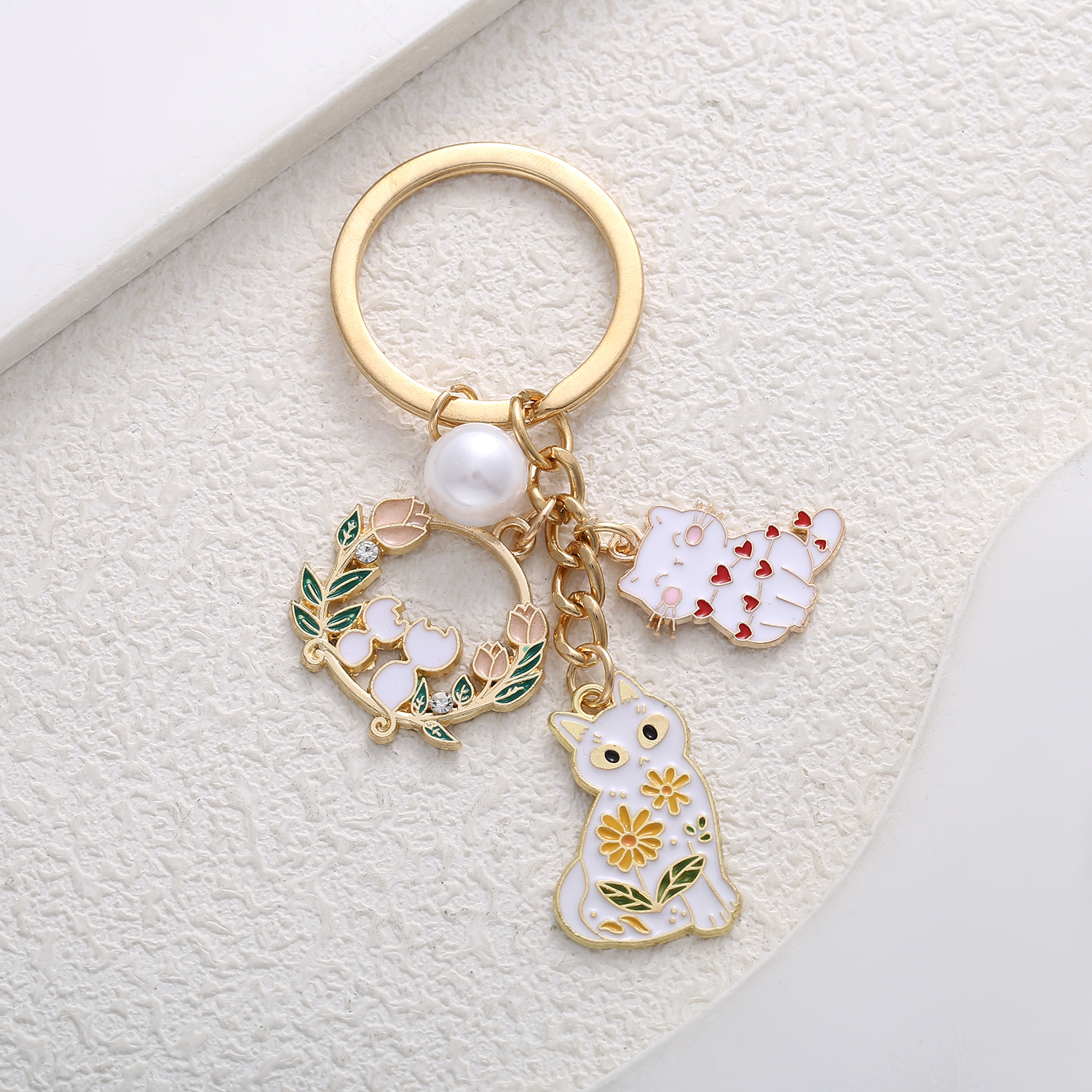 白い猫の花輪真珠のキーホルダーが可愛いです。