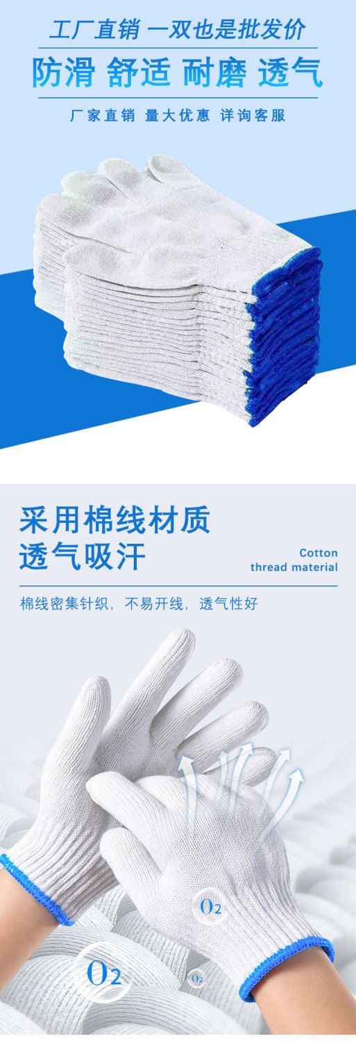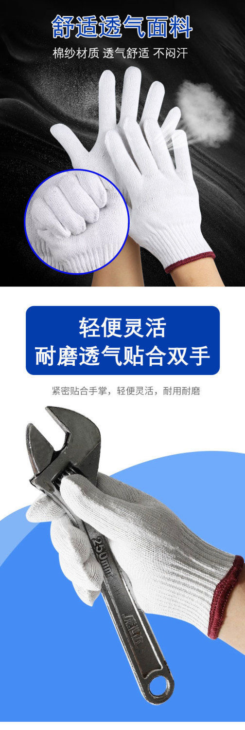 卸売綿糸手袋耐摩耗性糸手袋滑り止めハードウェア保護建設現場作業労働保護手袋