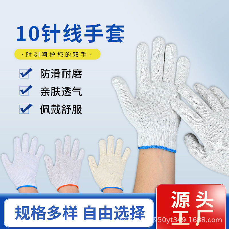 線手袋、十針ランプシェード、綿製労働保護手袋、建設現場用保護、耐摩耗性、滑り止め、作業用ナイロン綿糸手袋