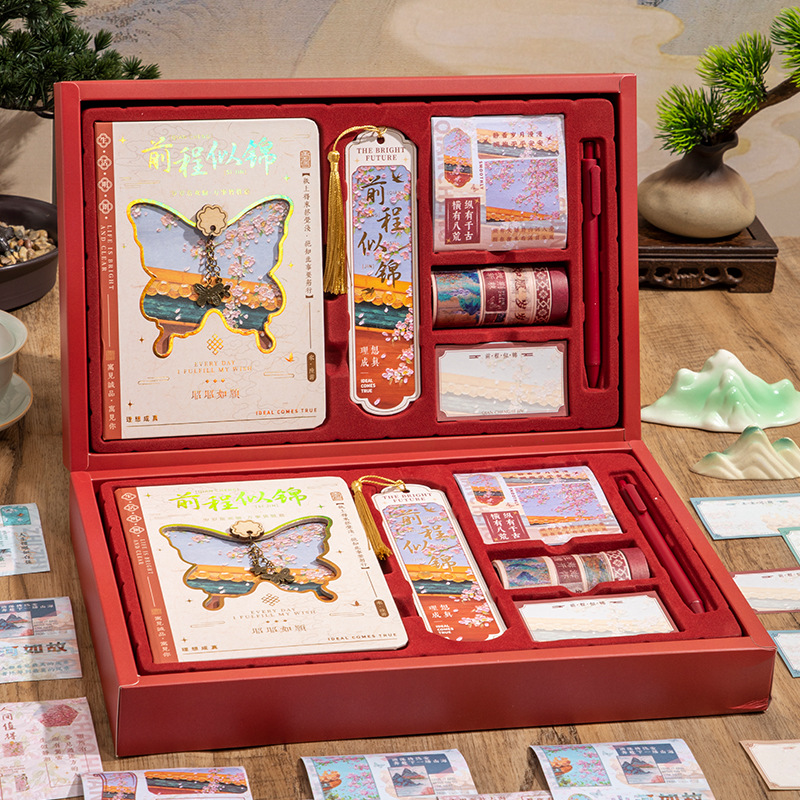 Jinshu Shaoguang ブックマーク ギフトボックスセット インズイラスト 中空ノートブック ブックマーク ギフトボックス ホリデーギフトセット