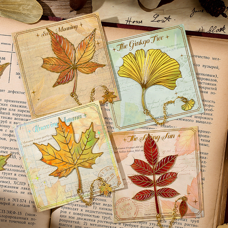 記憶標本シリーズのしおり創意木の葉金属高級感しおり一葉知秋卒業文創しおり