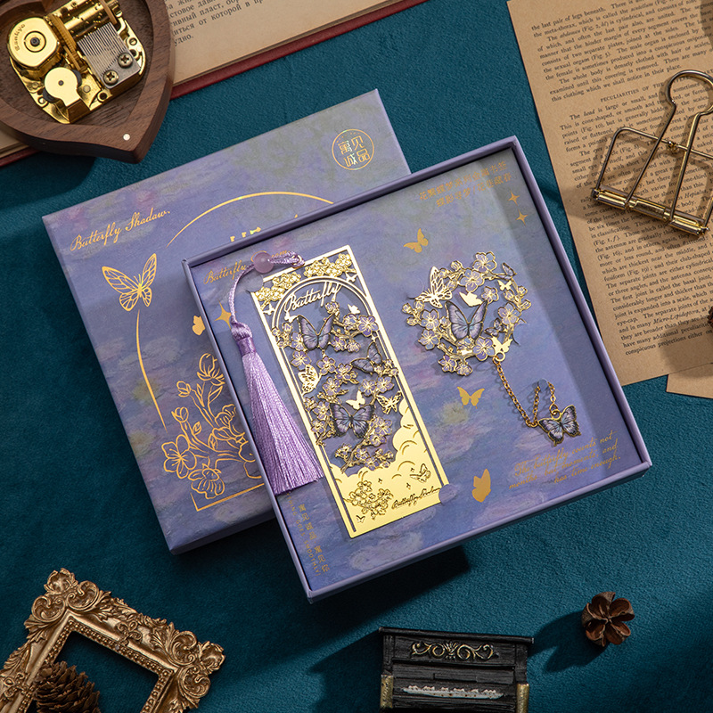 花と蝶の夢のしおりギフトボックスクリエイティブクリエイティブホリデーギフトお土産ハイエンドメタルタッセルしおりギフトボックス