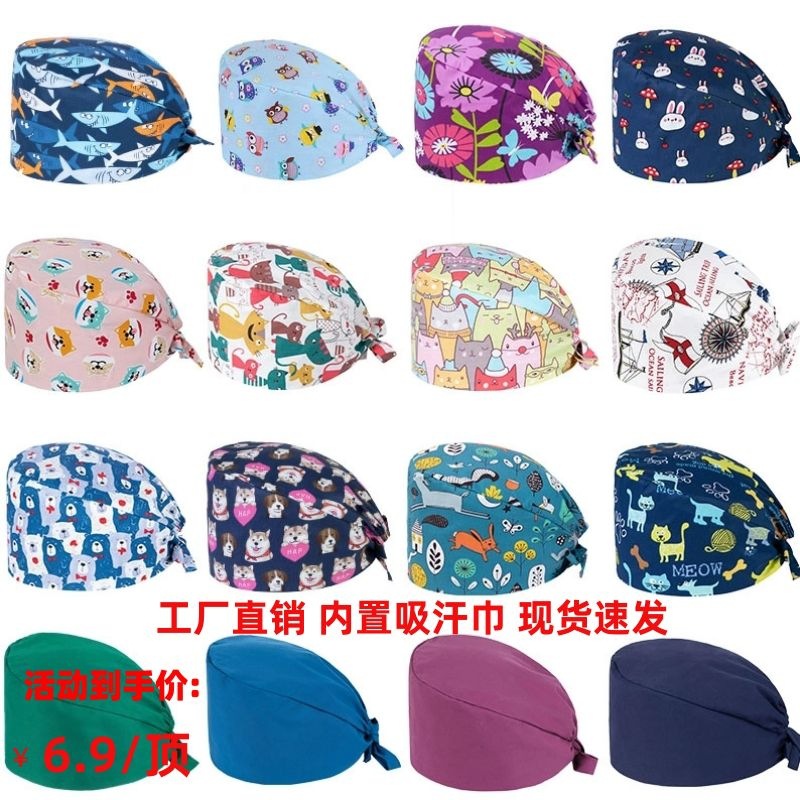 綿質医師手術室帽子男女プリント手術帽看護師歯科美容医師テンションバッグキャップ