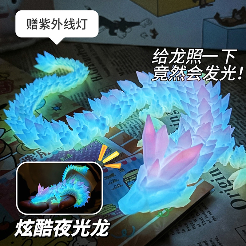 発光ドラゴン 3D プリントドラゴングラデーションクリスタルドラゴンフル関節可動シミュレーションおもちゃ男性デスクトップクリエイティブ装飾ギフト