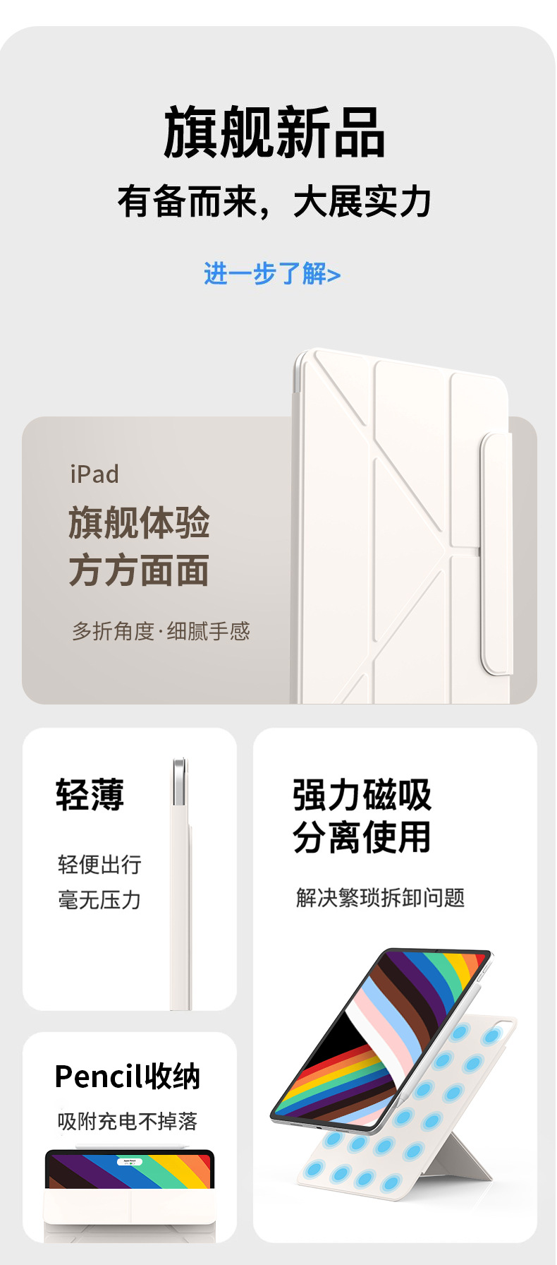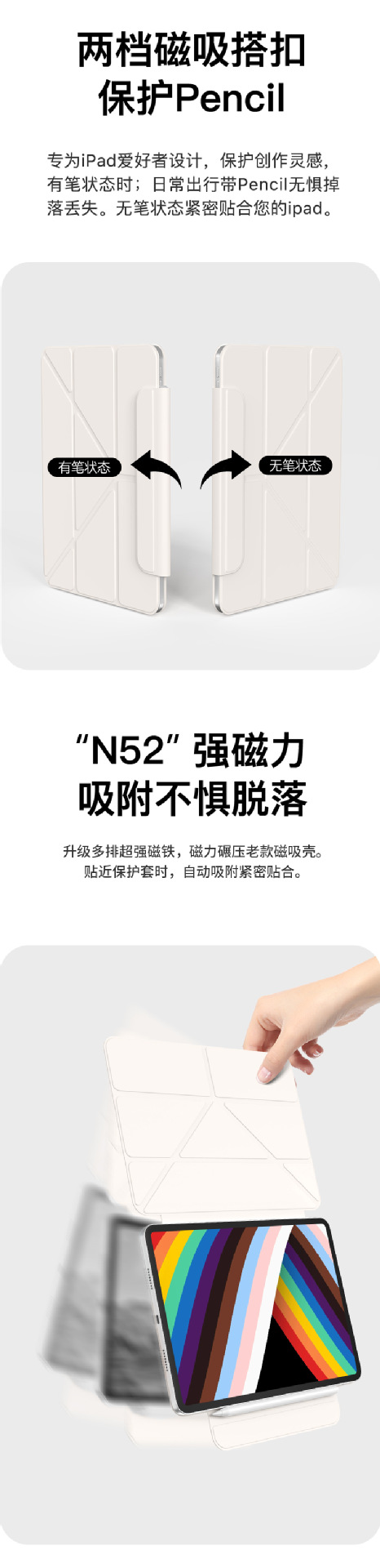 苹果air7保护套iPadpro磁吸拆分air56增高支架旋转iPad11保护壳10