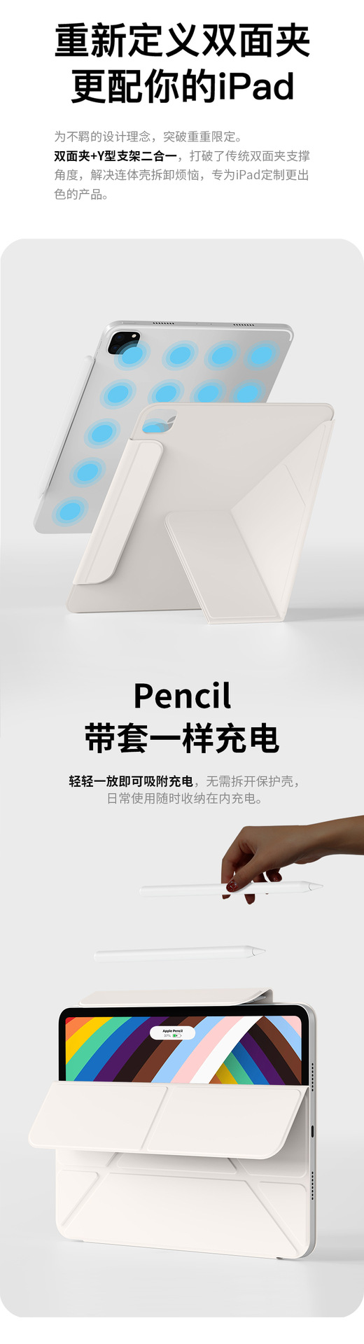 iPadpro保护套air7增高支架mini7双面夹air56横竖屏苹果Pad11搭扣
