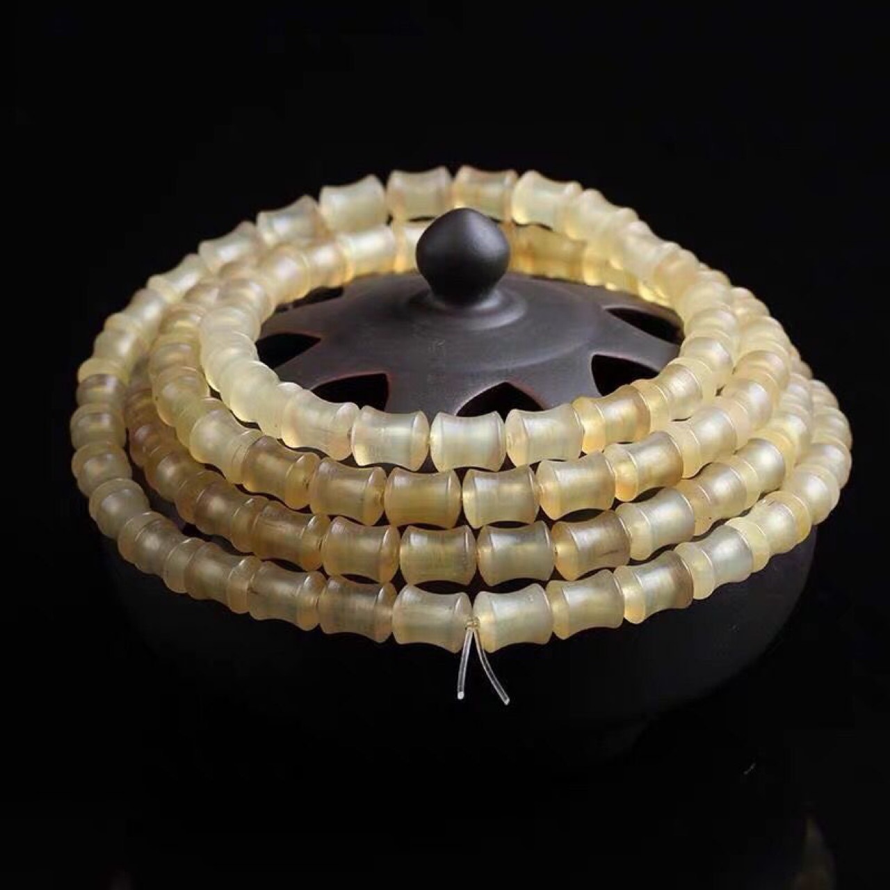 チベットの古い羊の角は竹の節のブレスレットの仏珠の男女の金の清熱を磨いて火に行きます7*9mm