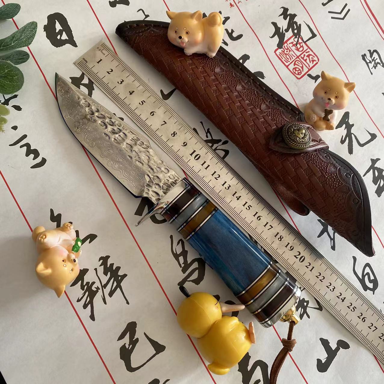 現物手作り鍛打ダマスカス鋼高硬度青松石鹿角ハンドル果物野菜ナイフハンドル肉ナイフ