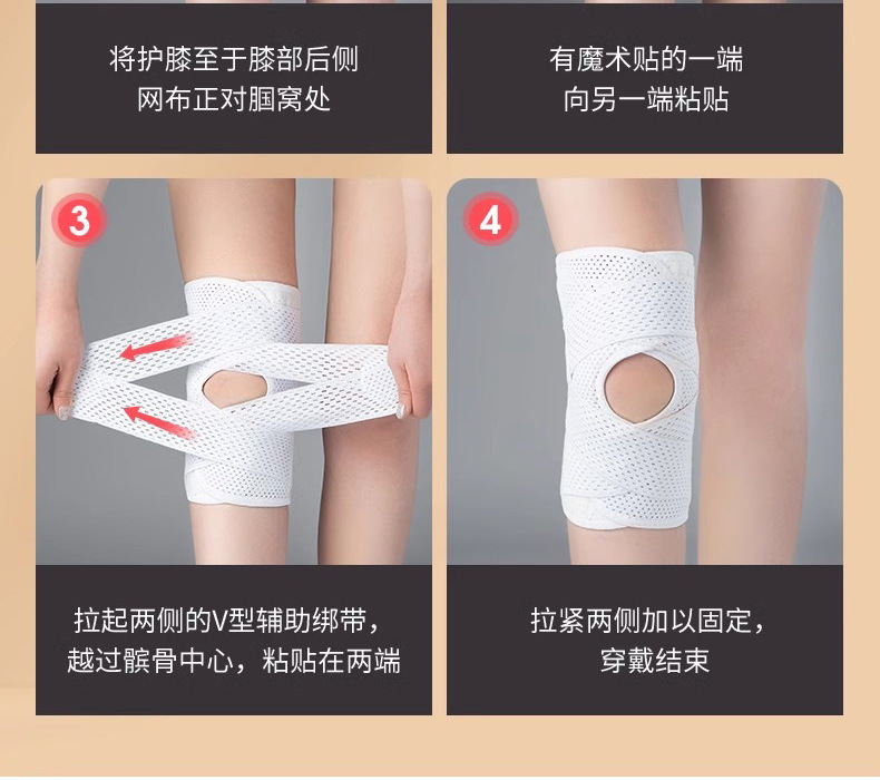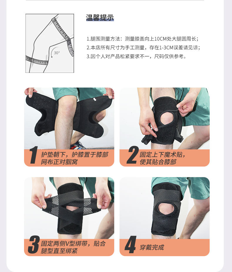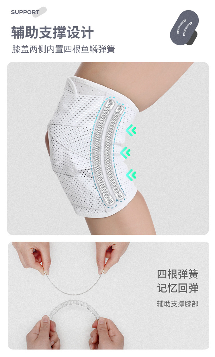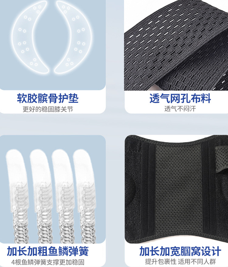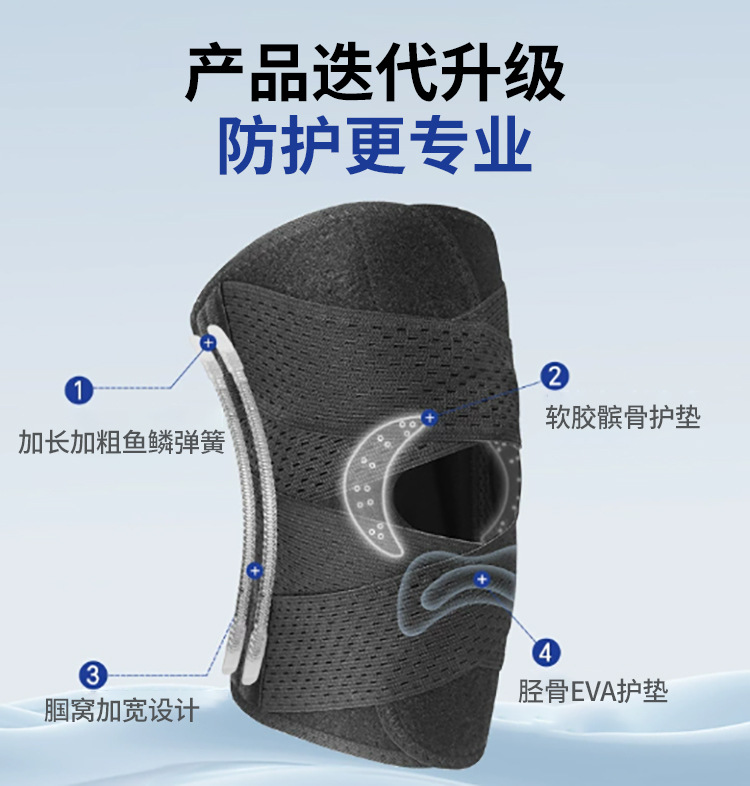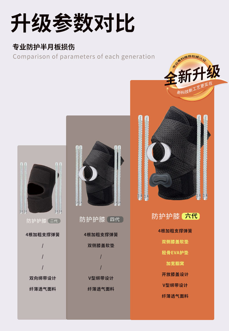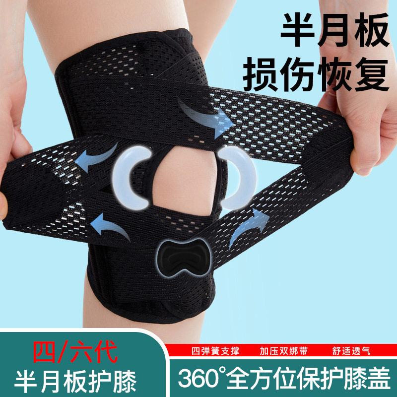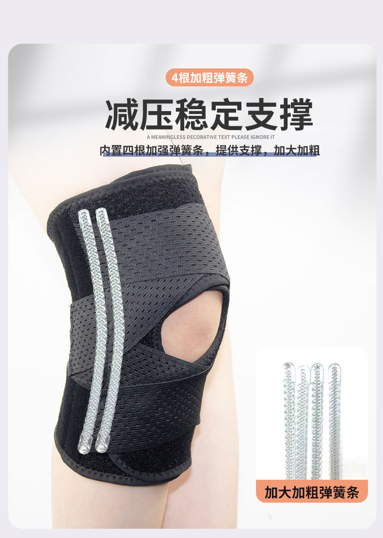 六代日本护膝网眼透气半月板稳定弹簧支撑护膝松紧绑带加压带减震