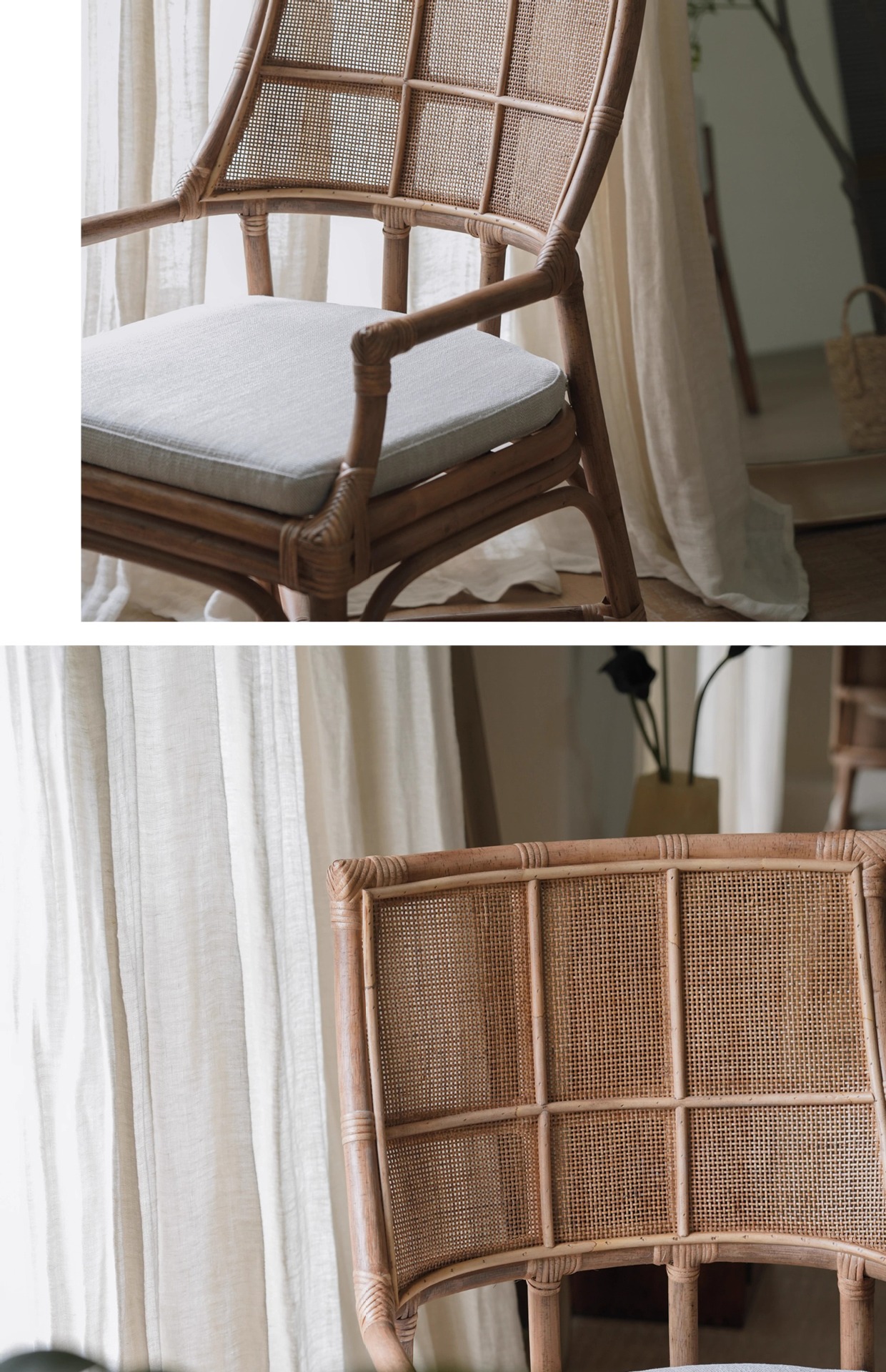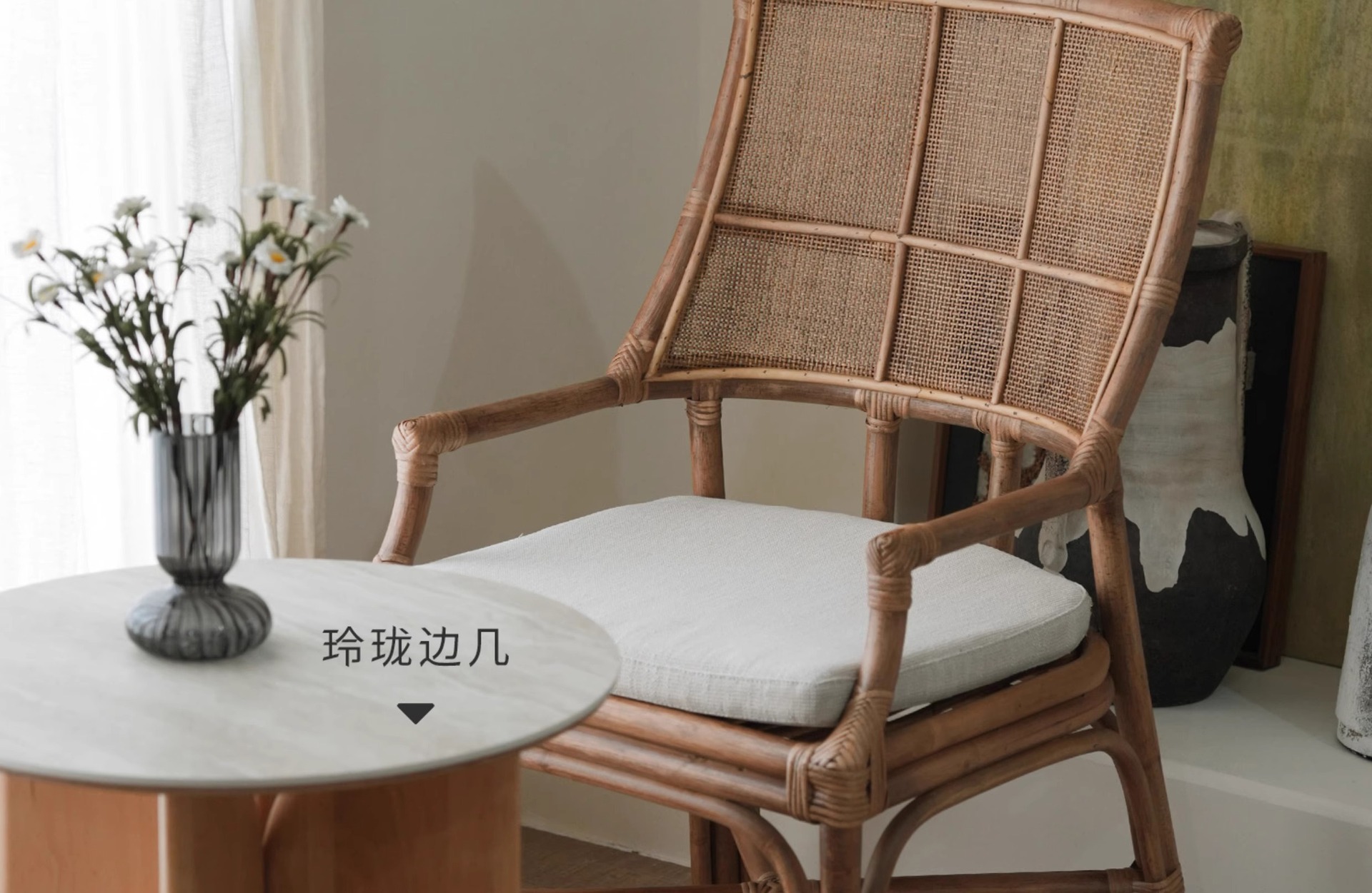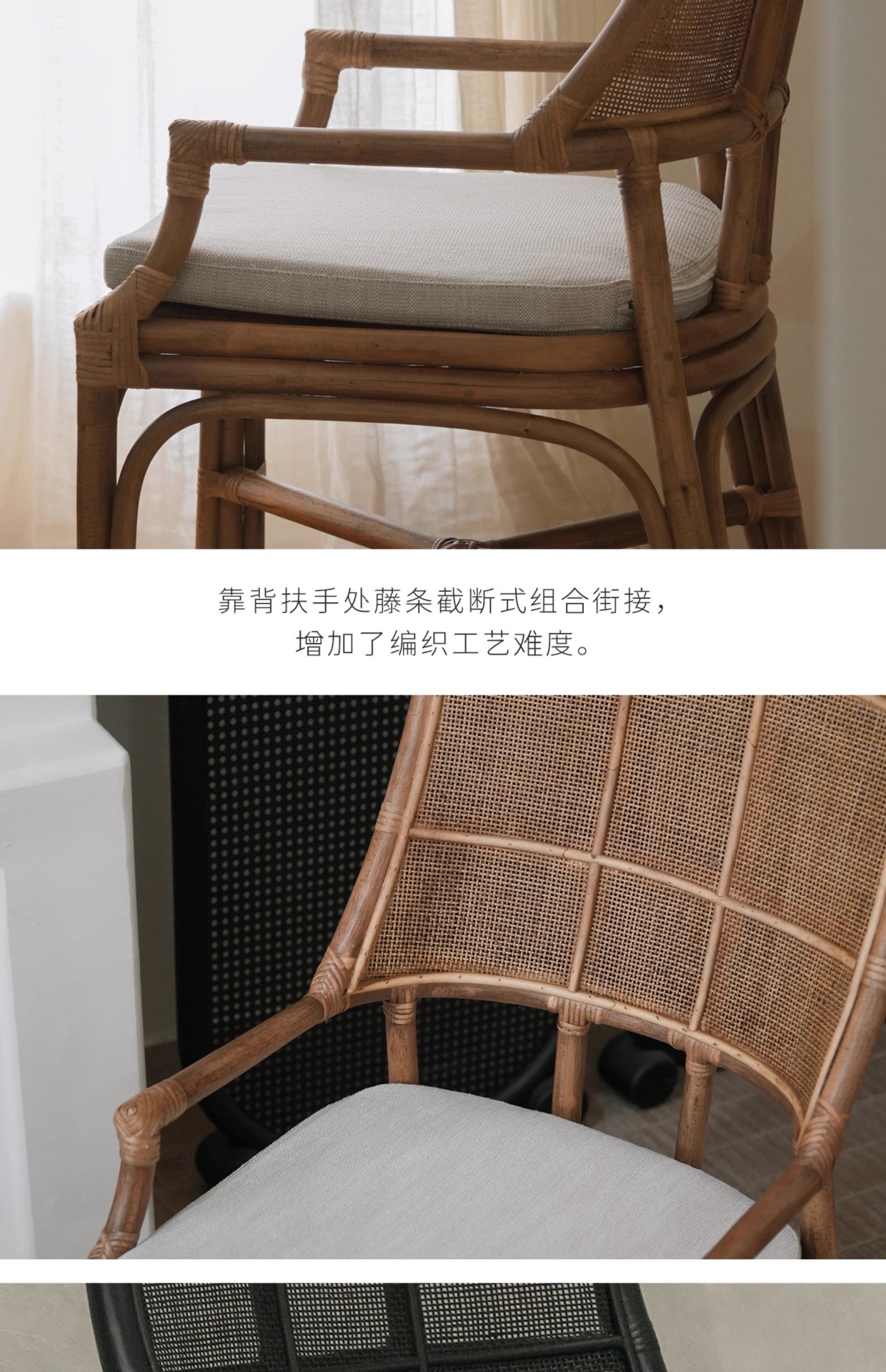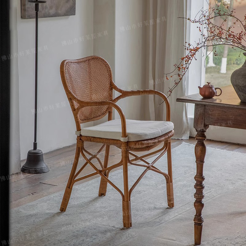 北欧日本式藤編み椅子レトロ天然真藤レジャー藤椅子民宿茶室寂風シングルアームチェア