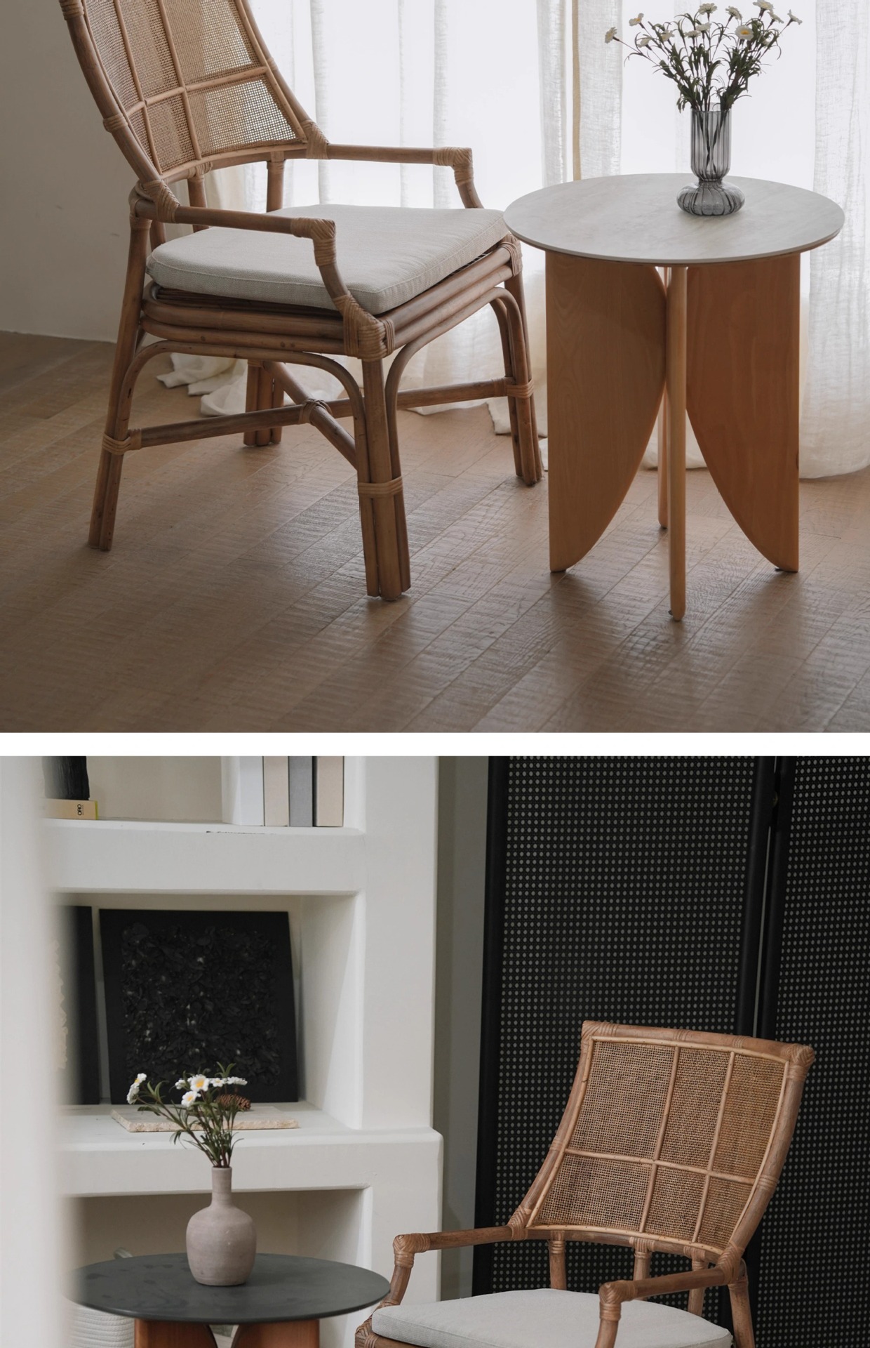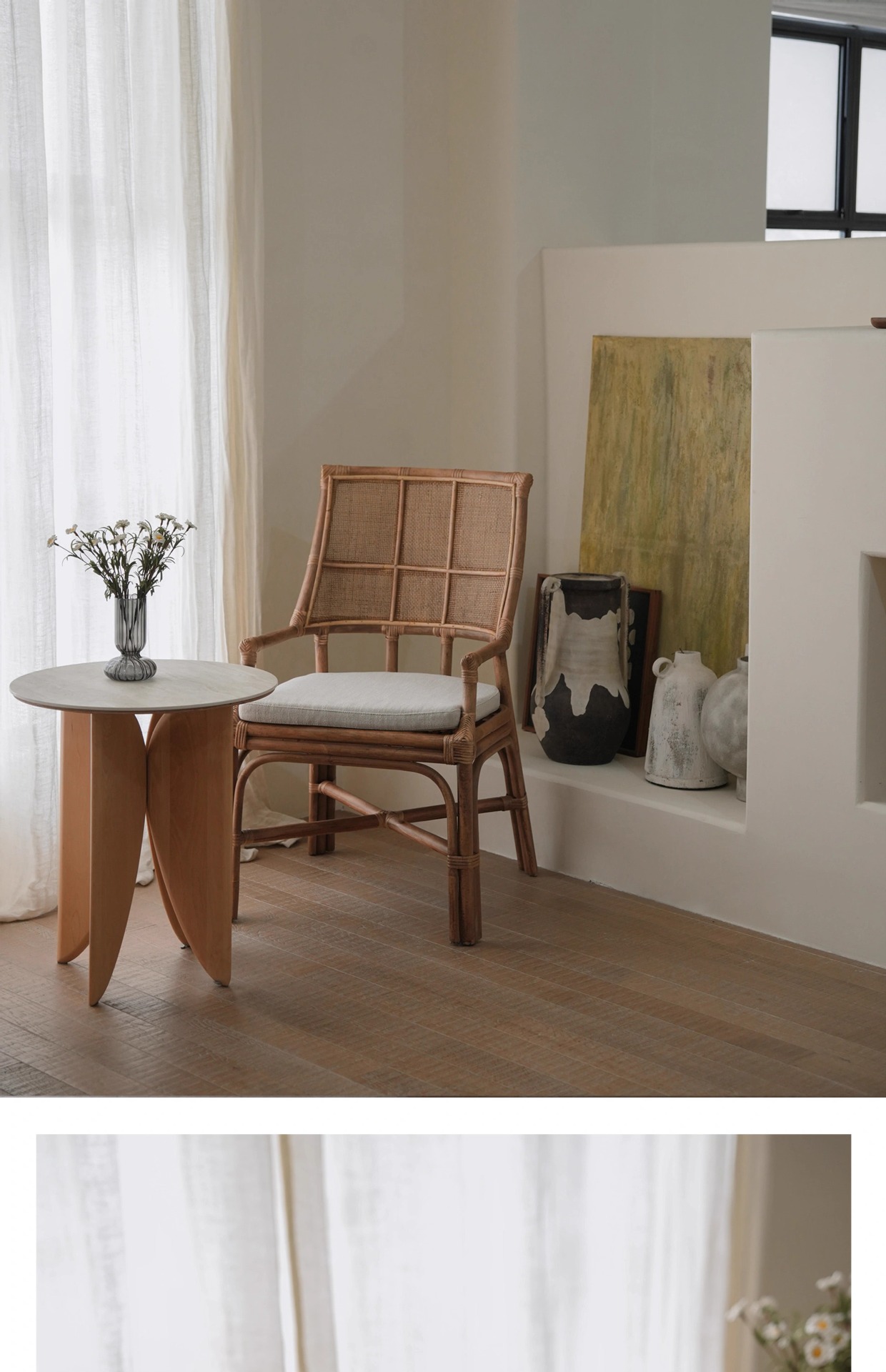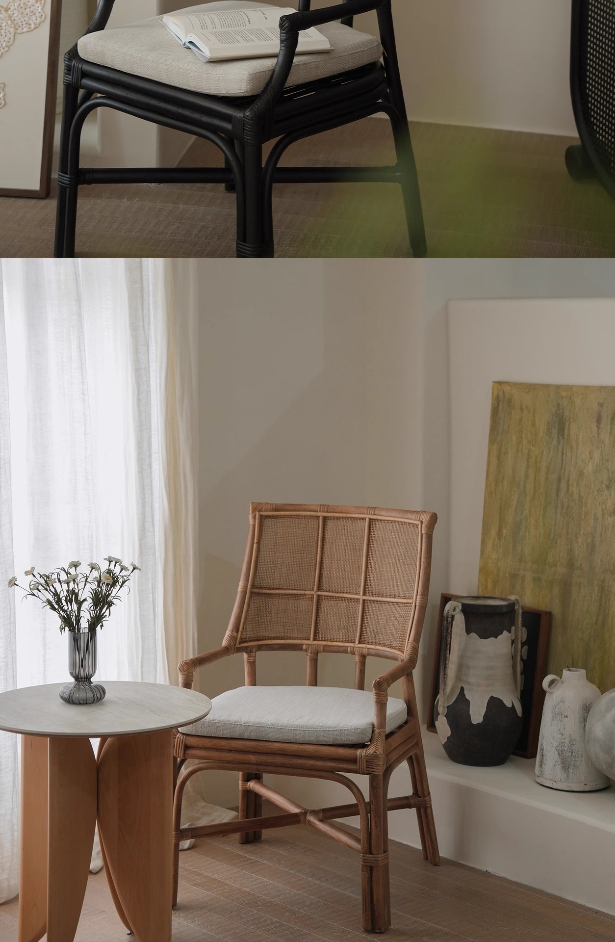 北欧日本式藤編み椅子レトロ天然真藤レジャー藤椅子民宿茶室寂風シングルアームチェア