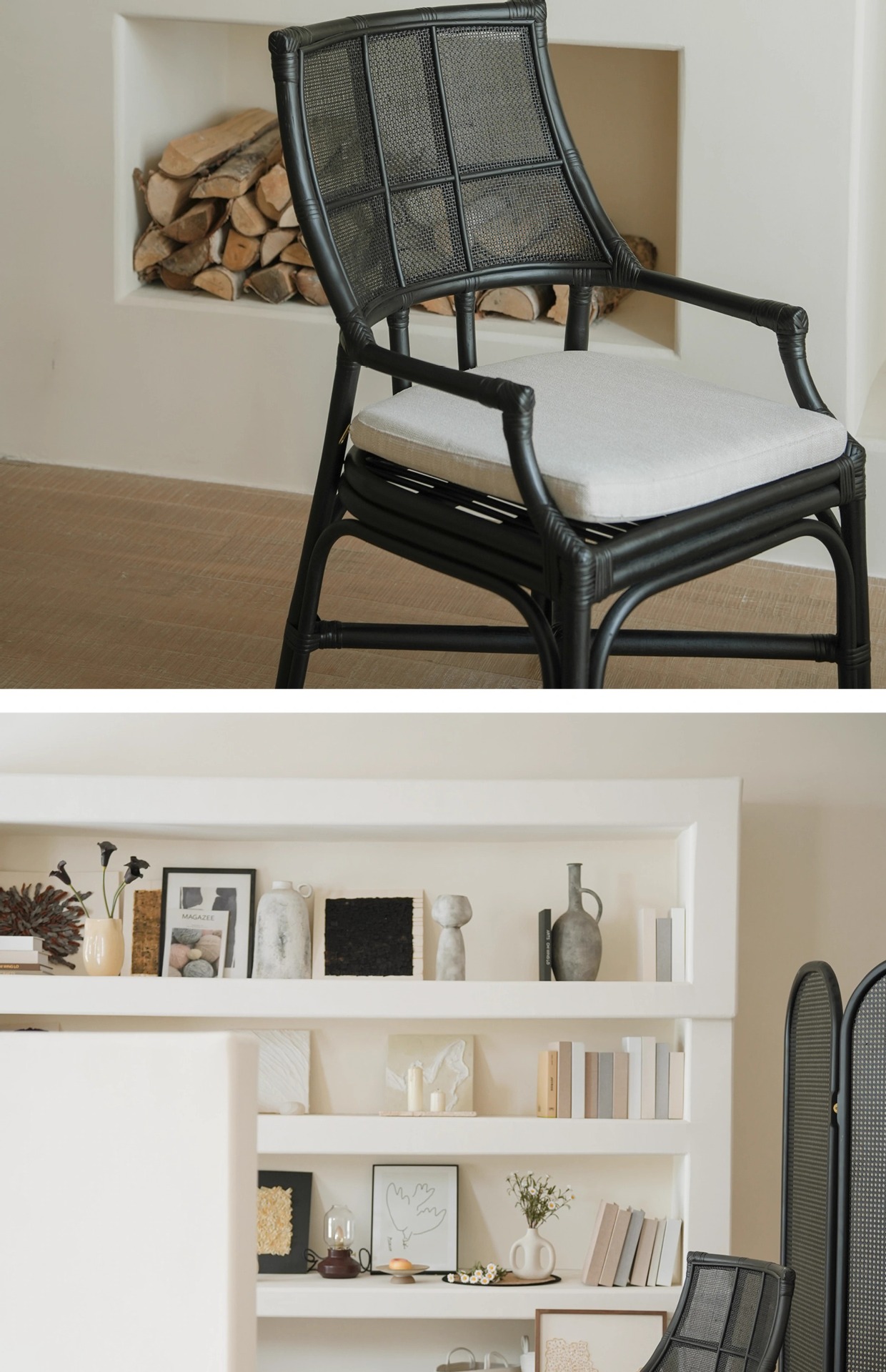 カラー ブラック【シュジュン籐椅子】,ログカラー【シュジュン籐椅子】