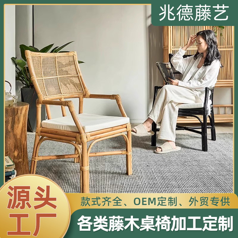 天然インドネシア藤椅子東南アジア藤編み手すり背もたれ椅子民宿客間編み家庭用ベランダレジャー椅子