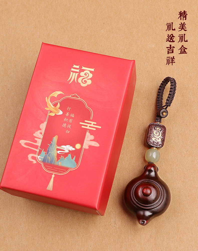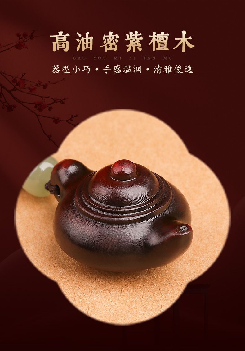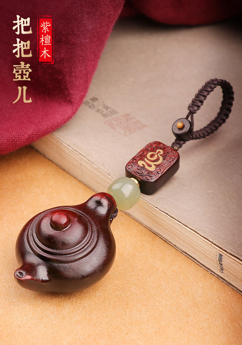 紫檀木の手で遊んでいます。壺のキーホルダーを小さいティーポットに掛けます。