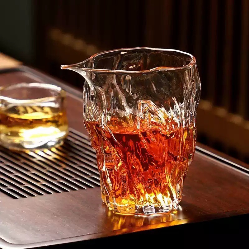 日式公道杯加厚玻璃树皮纹功夫茶具茶漏杯公杯单个分茶器
