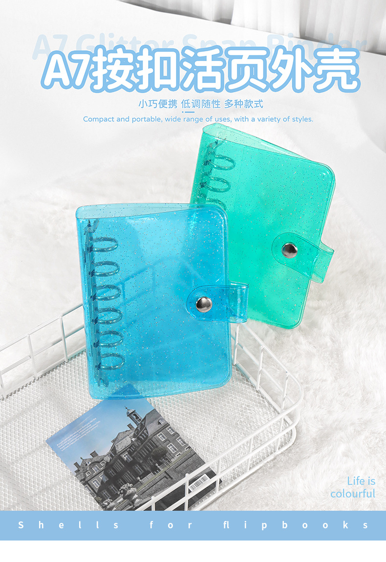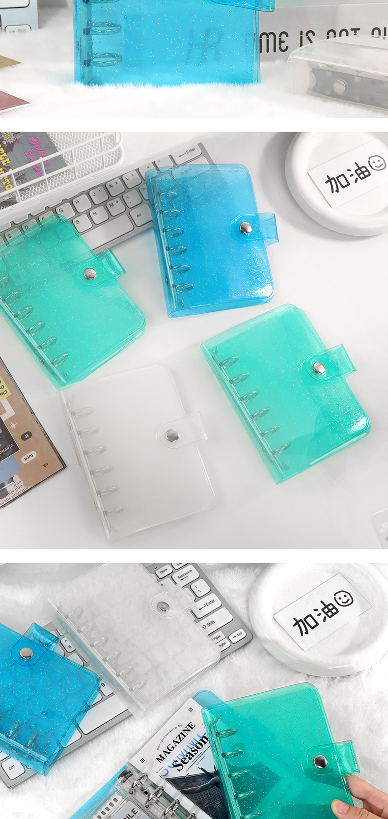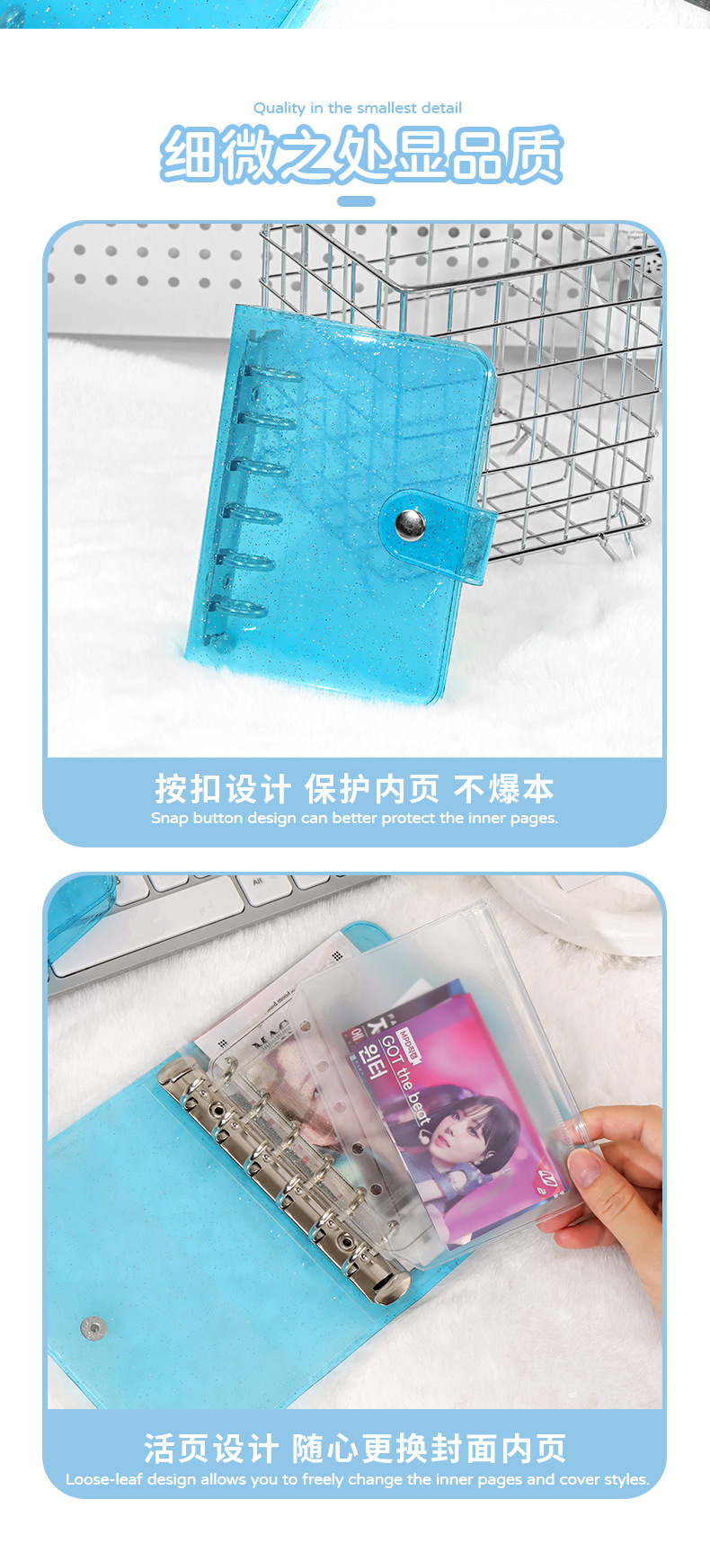 包郵便キラキラストラップa 7ボタンバインダーノート記録本PP PVC表紙手帳ケースは取り外し可能です
