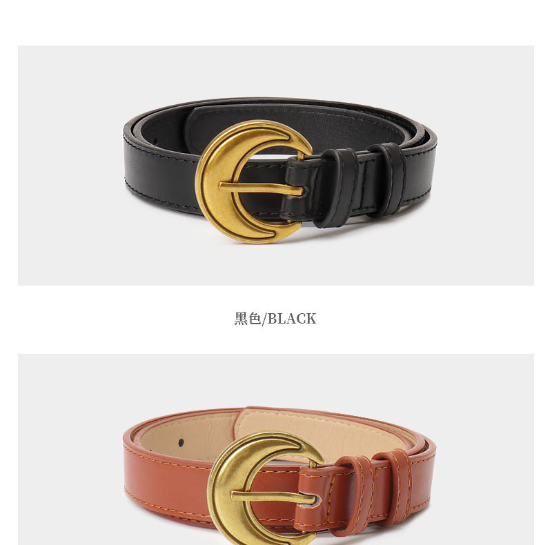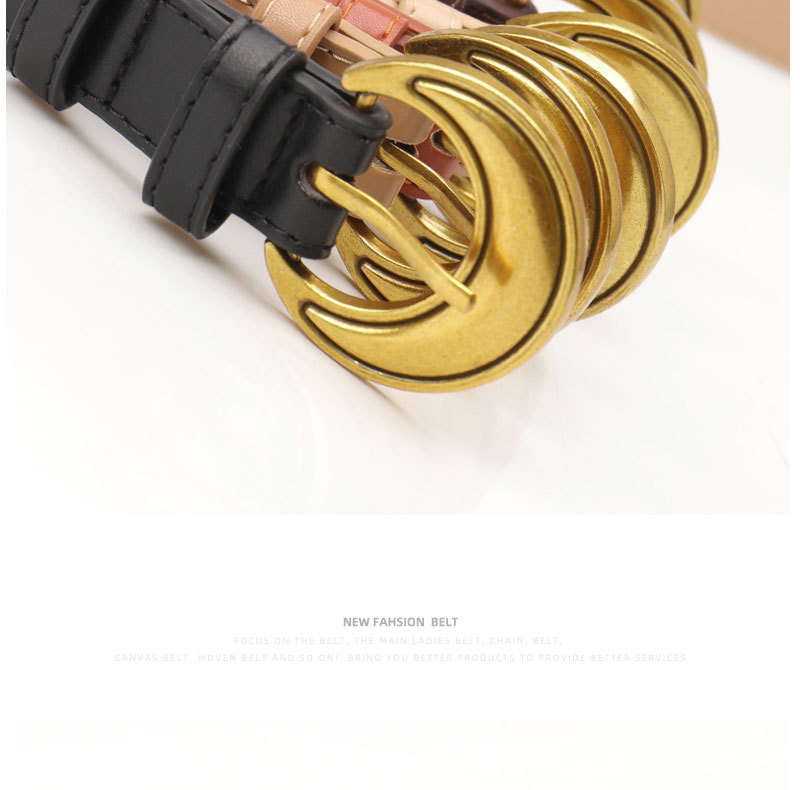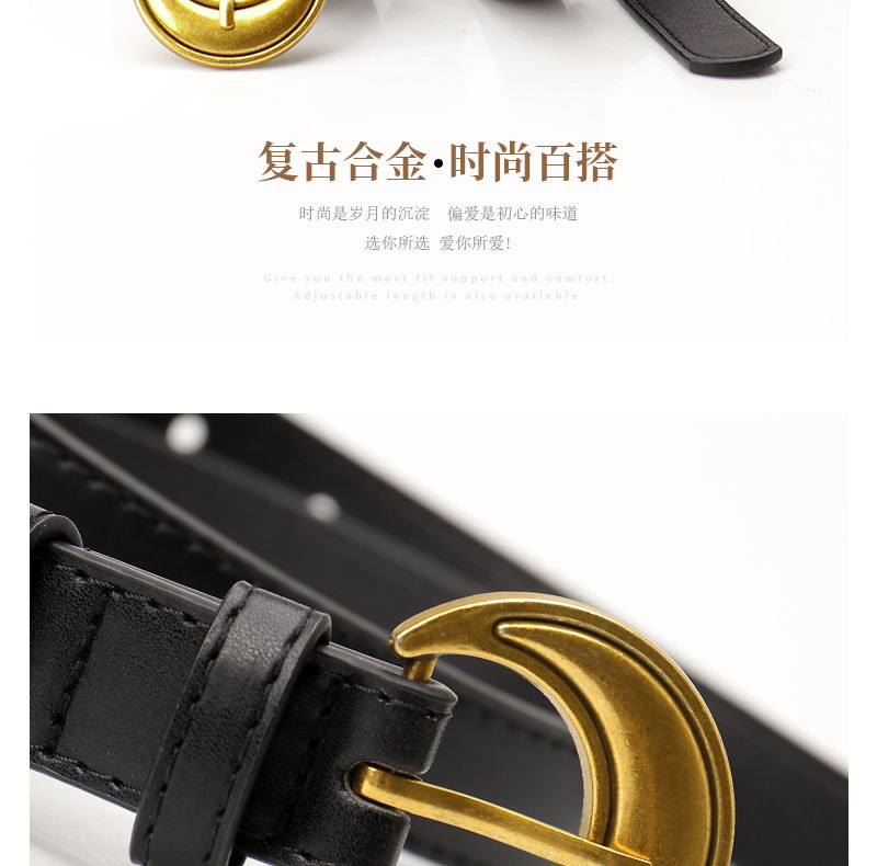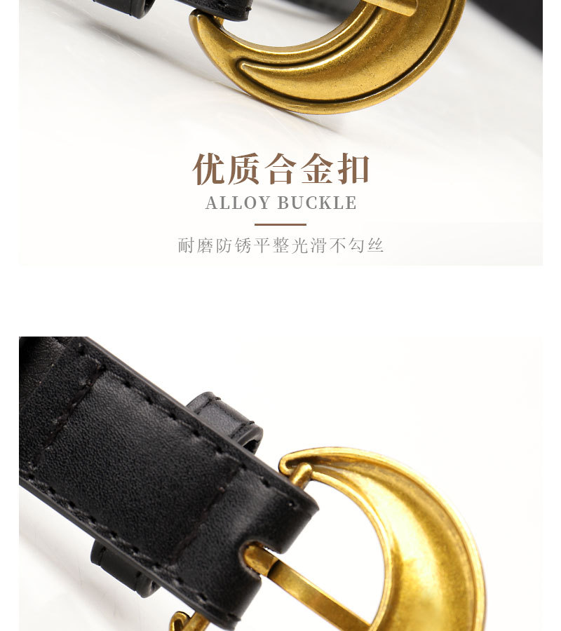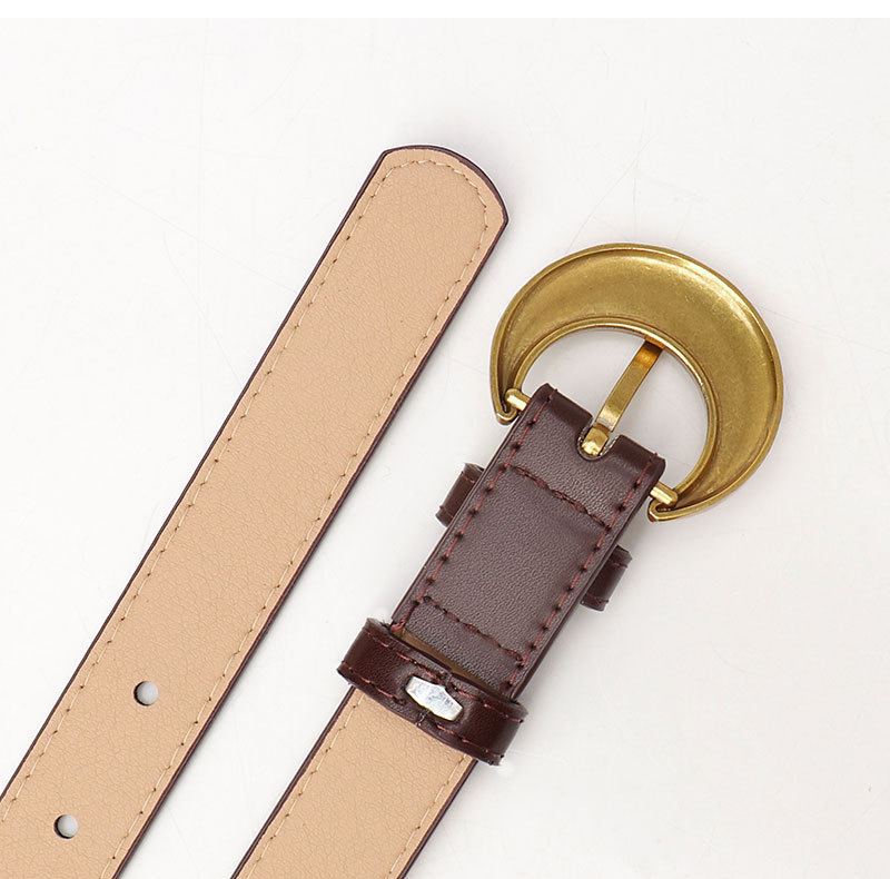 レトロ三日月ベルト女性ファッション通勤風古金針バックル女性ベルト百合高級感ジーンズベルト