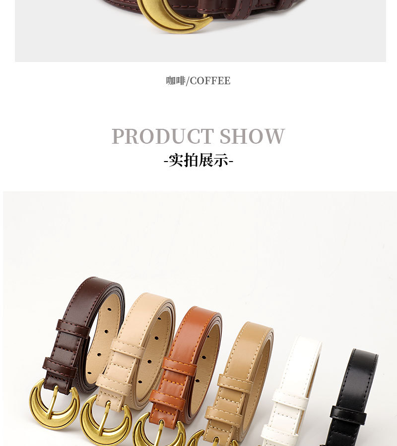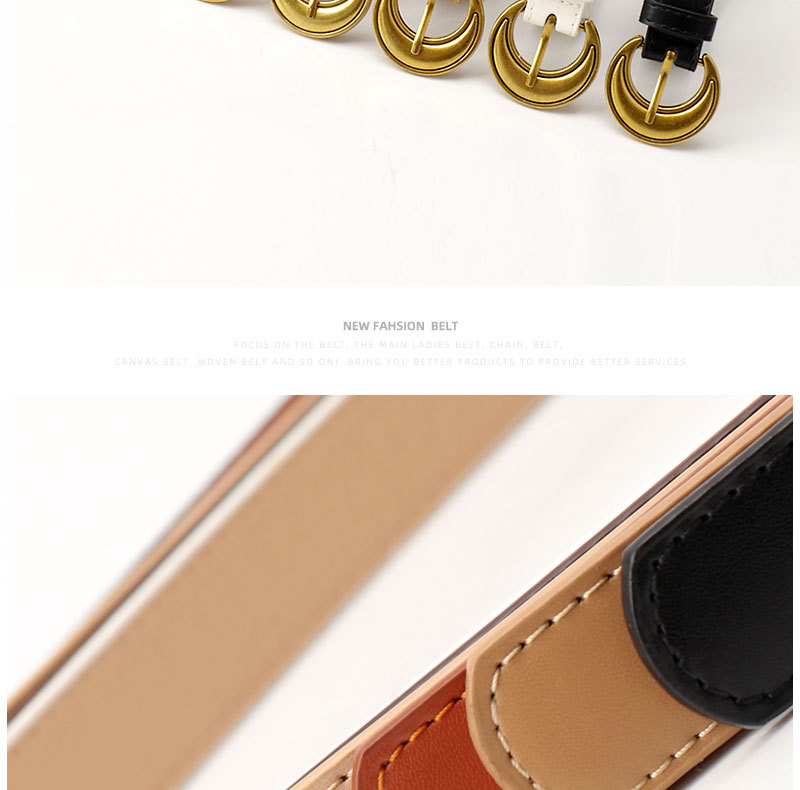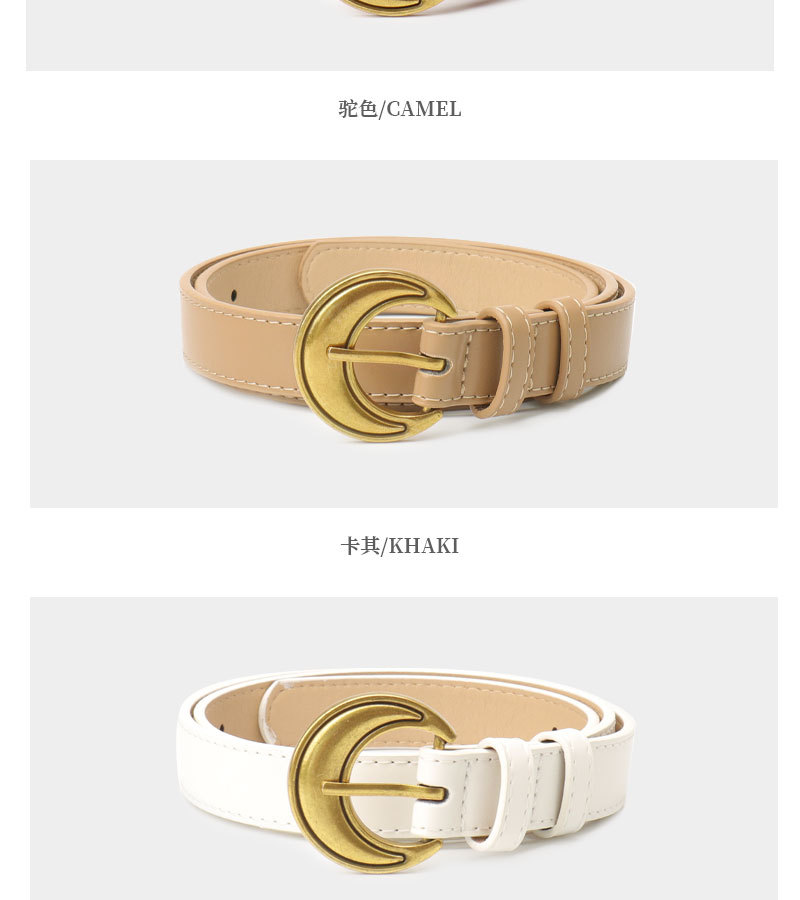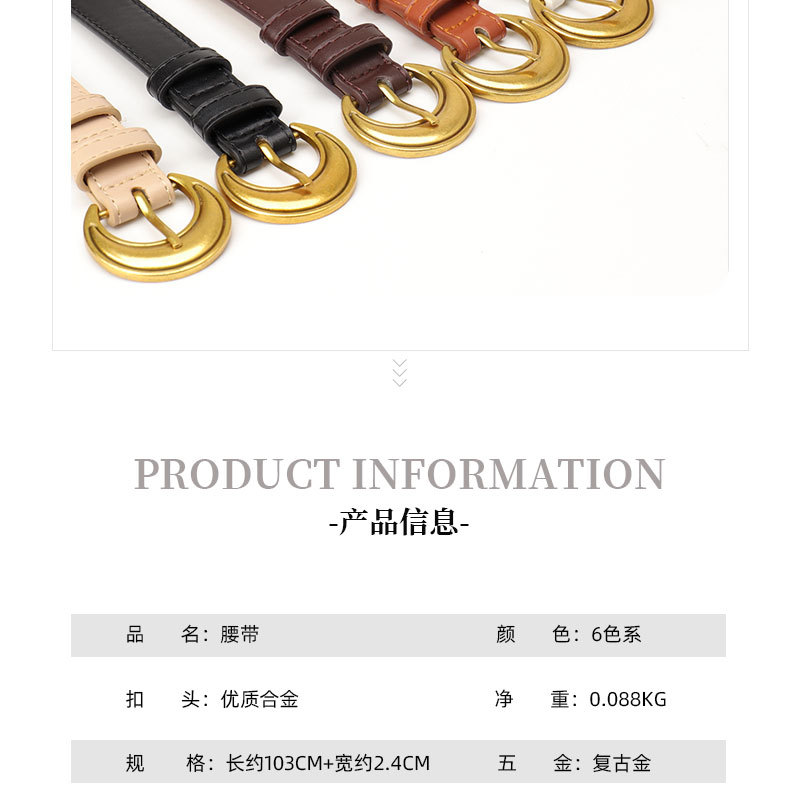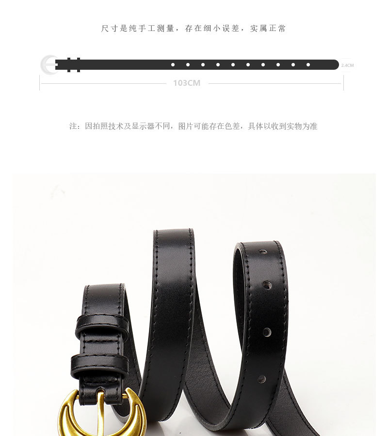 レトロ三日月ベルト女性ファッション通勤風古金針バックル女性ベルト百合高級感ジーンズベルト