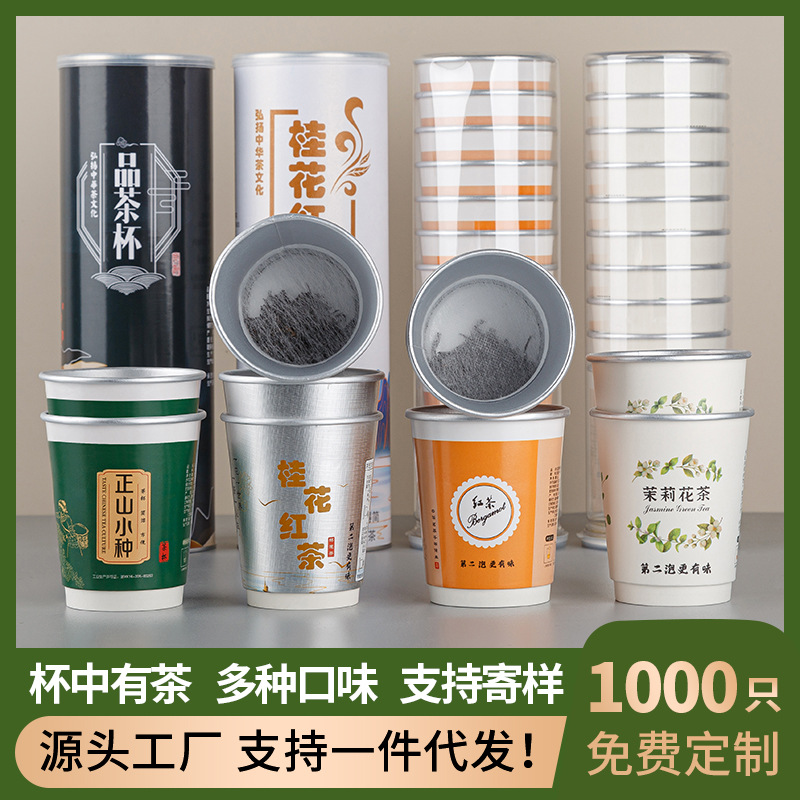 使い捨て紙コップ、茶葉入り二重アルミ箔紙コップ、厚手のカップに茶葉入り、ビジネスレセプション用隠し茶カップ、カスタマイズ可能