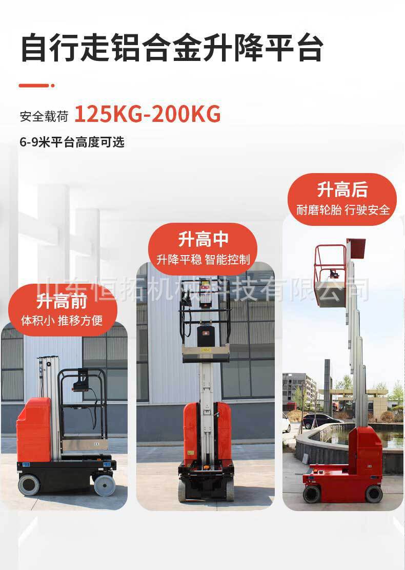 全自アルミニウム合金高所昇降プラットフォーム単柱昇降機電動式昇降台
