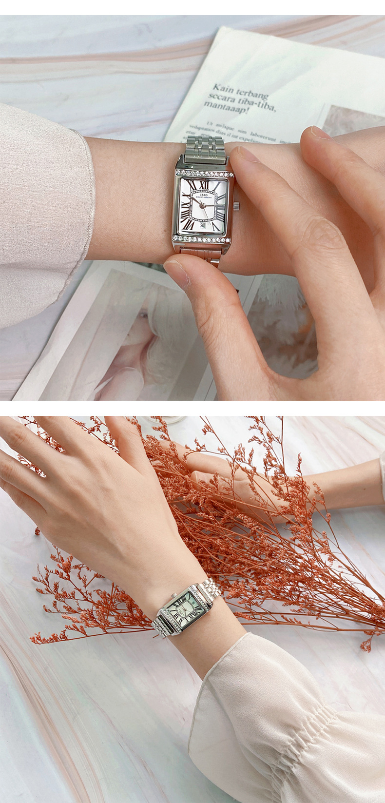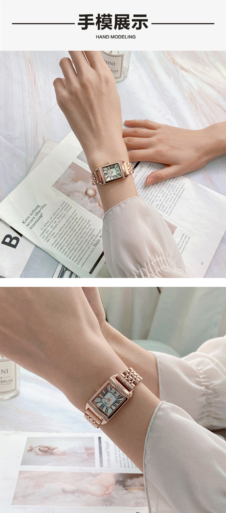 人気ファッションシンプルな四角い水滴ドリルレディース腕時計のブレスレットのモデルは、高級感石英時計の国境を越えた
