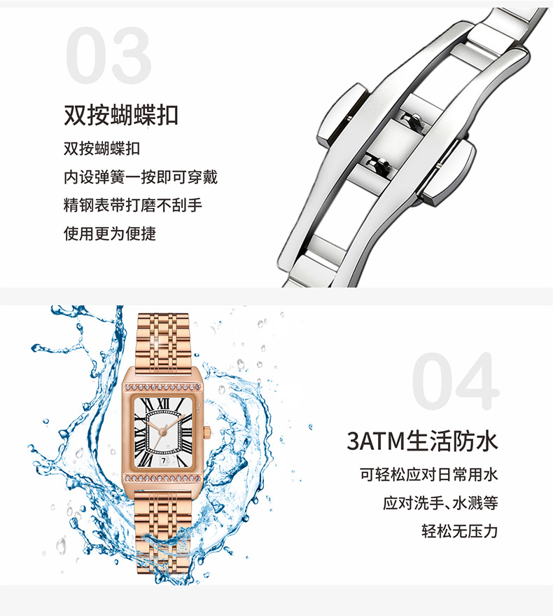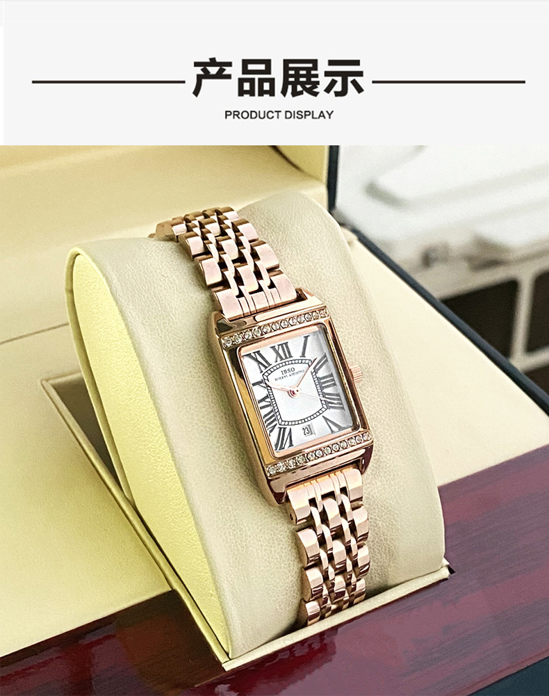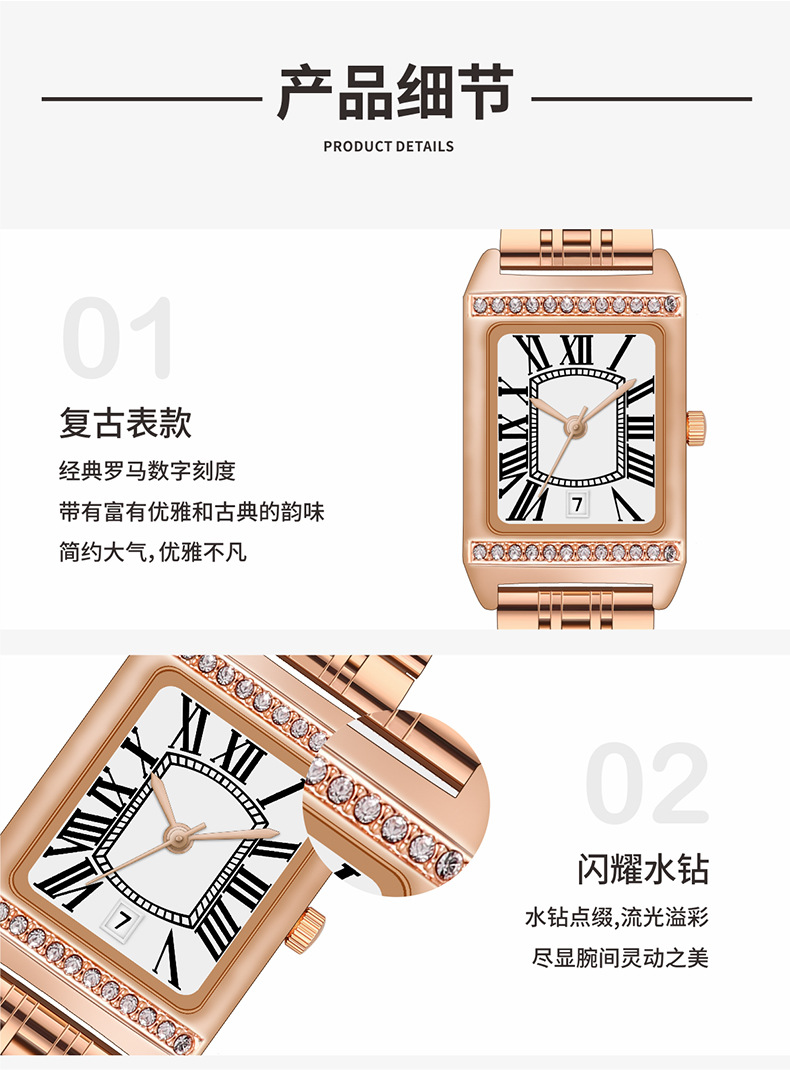 専門店の正規品の小さい四角形の腕時計の女性のタイプの真牛のベルトの防水ネットの赤い生放送の人気の爆発の爆発の金の2024新型の時計