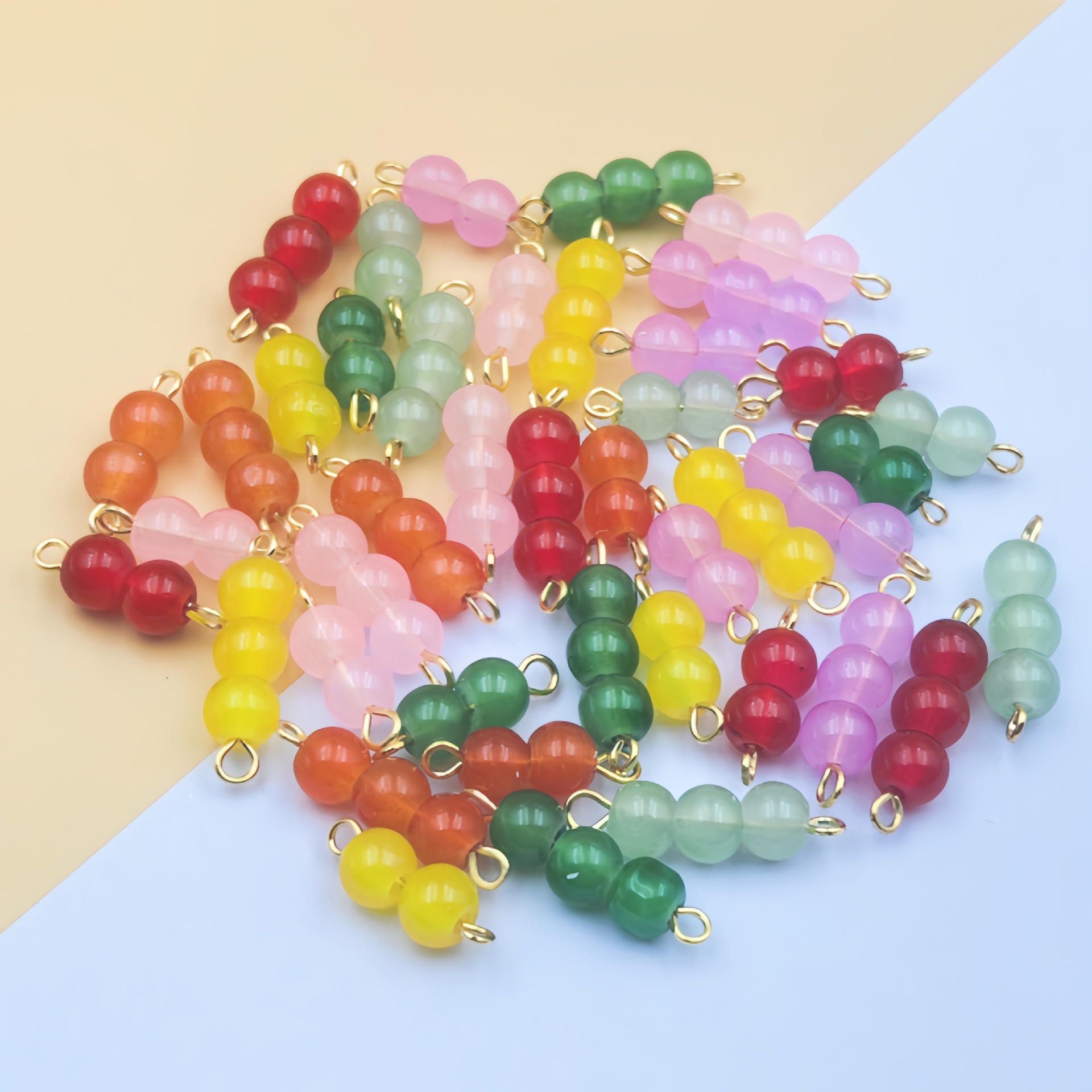 9字针串珠彩色珍珠双吊双环饰品古风装饰配件