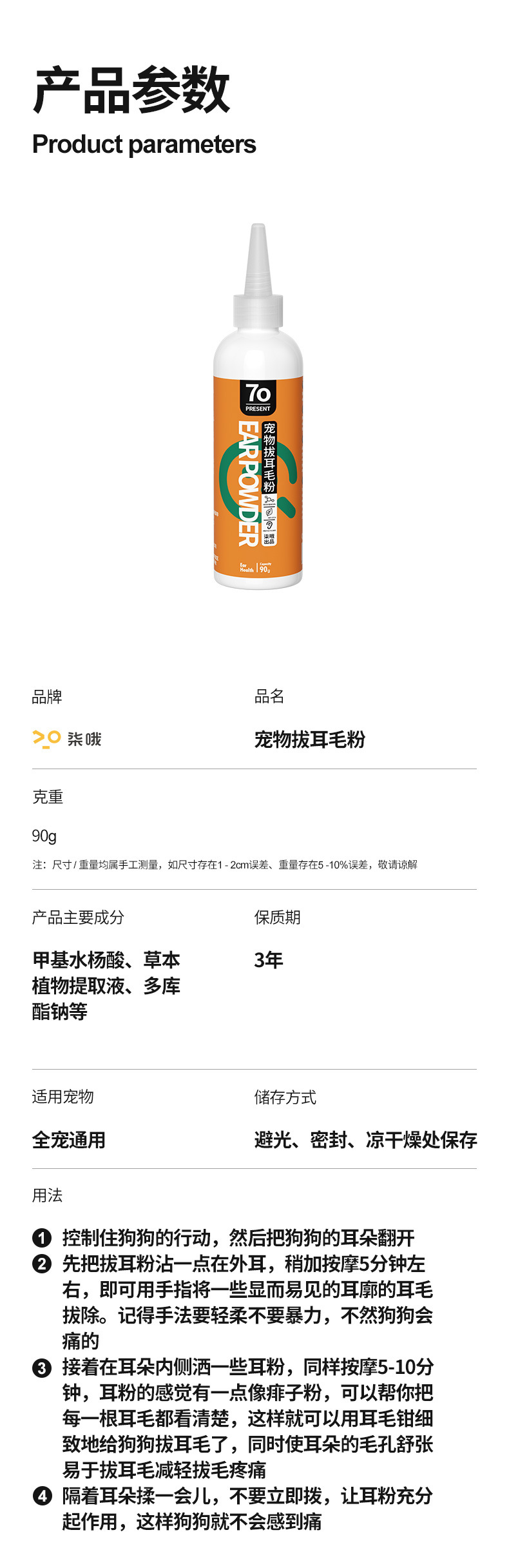 来旺兄弟拔耳粉耳部拔毛狗狗猫咪轻松拔耳毛缓解疼痛清洁耳朵卫生