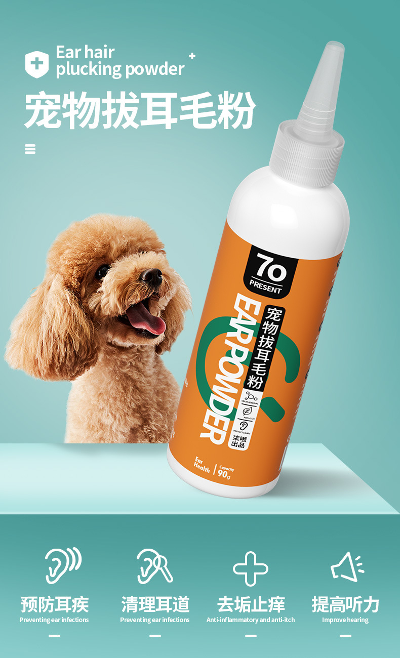 ペットの耳毛除去パウダー、犬猫兼用、耳毛抜きペンチ、消臭、清潔、耳の保護