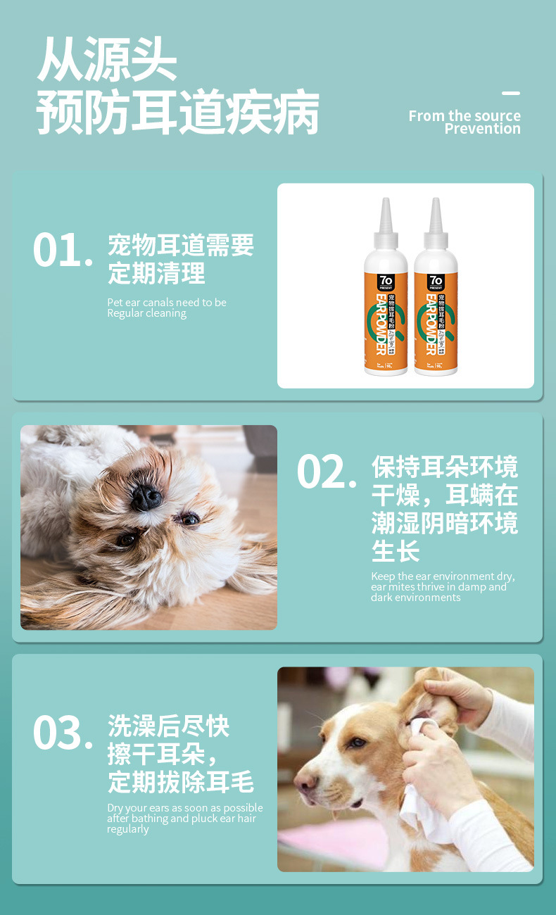 メーカー卸売り42gペット耳毛粉猫犬耳道清潔看護用品耳ダニ分泌物