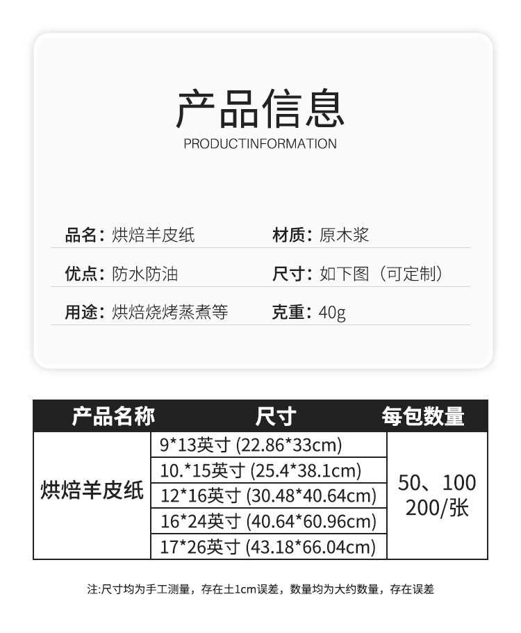 烤箱烘焙硅油纸烤肉长方形烤盘纸烧烤纸吸油纸食物耐高温不粘垫纸