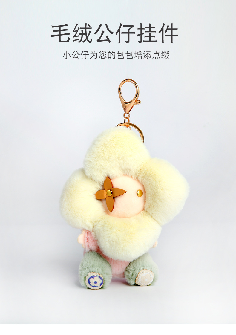 驴家太阳花可爱毛绒公仔包包挂件粉色米色毛球钥匙扣时尚潮流挂饰