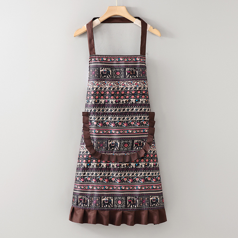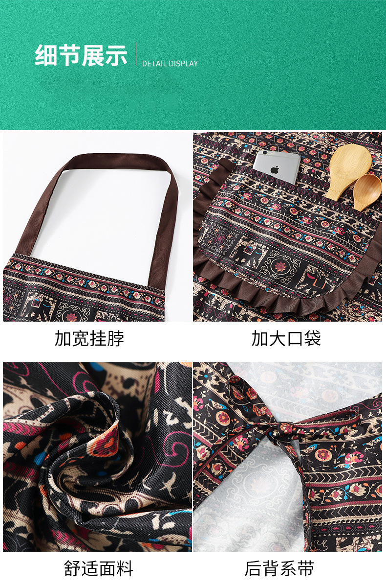 レトロな民族風エプロン キッチン用 家庭用 2025年新作 おしゃれな純綿 女性用 美しい 夏用 薄手 カフェ・レストラン向け 通気性