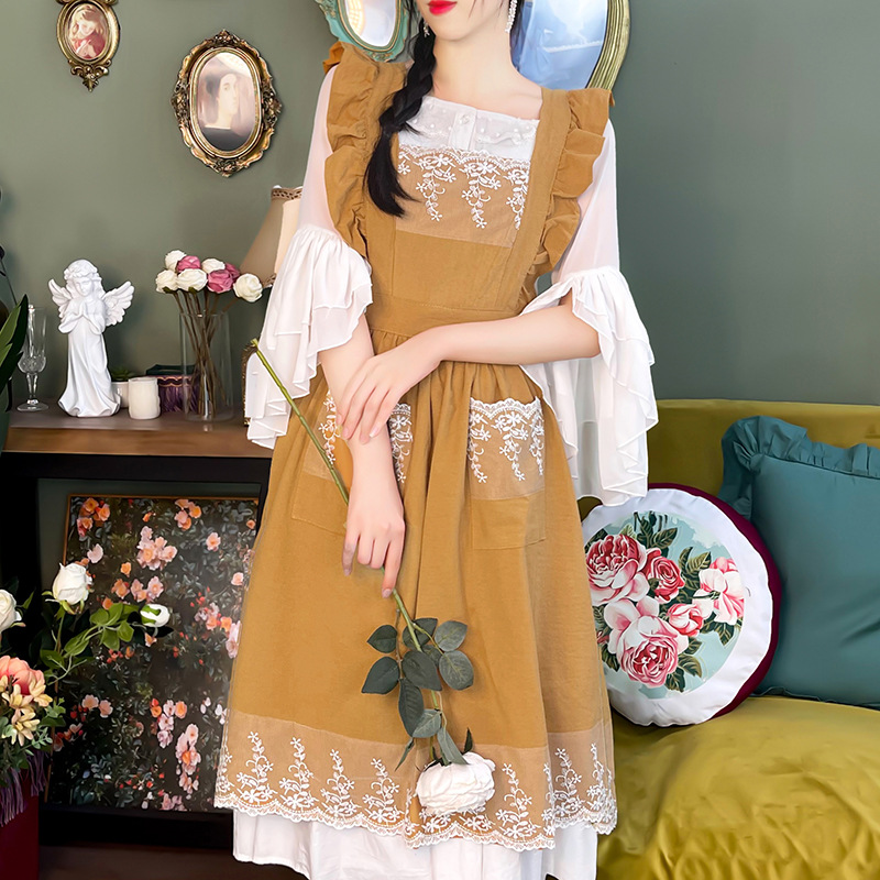フランス田園風エプロン女性高颜値カバーキッチン家庭用夏作業服料理首エプロン卸売り