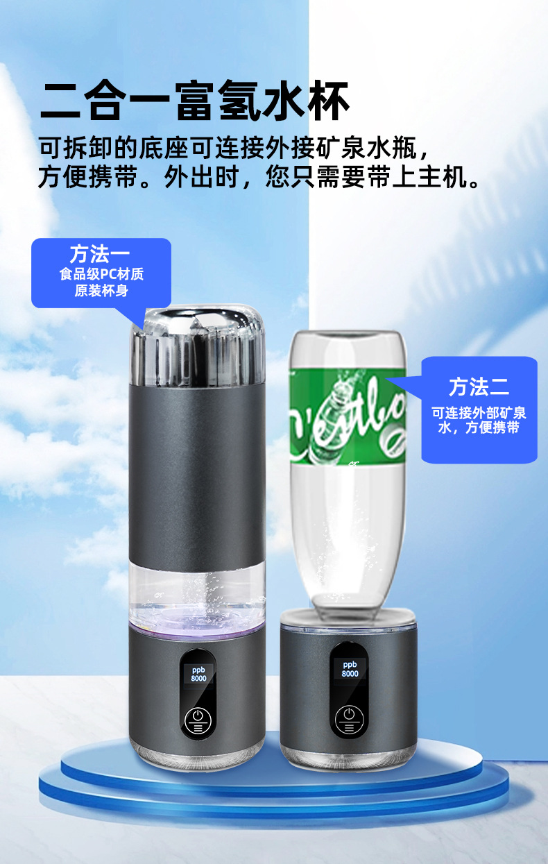 クロスボーダー400ml手提げタイプTritan材質水素酸素分離水素カップ水素濃度13000PPb水素水