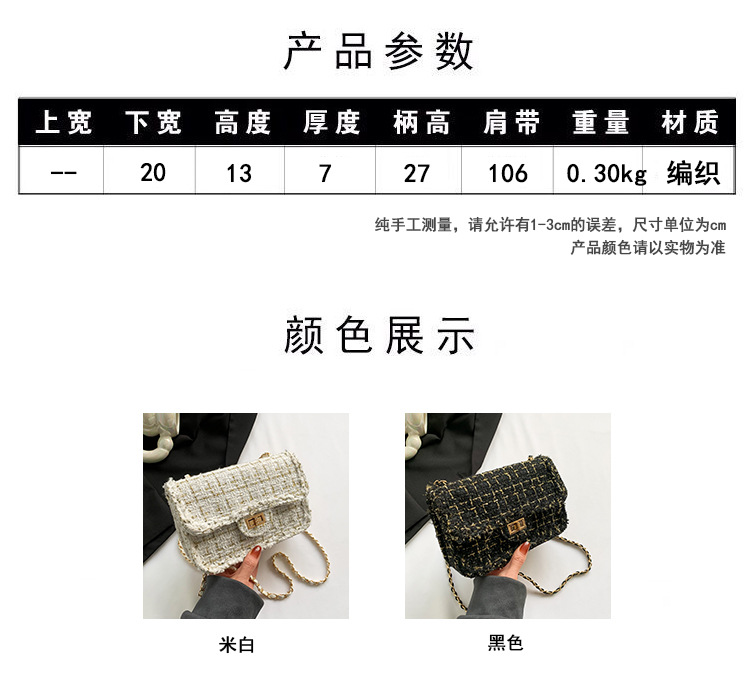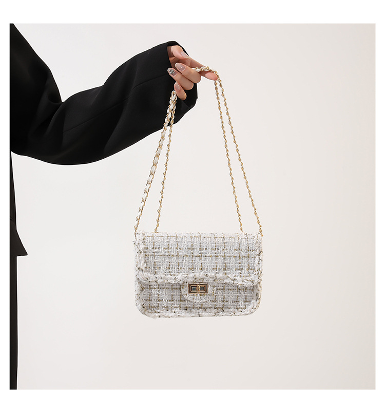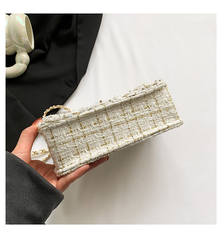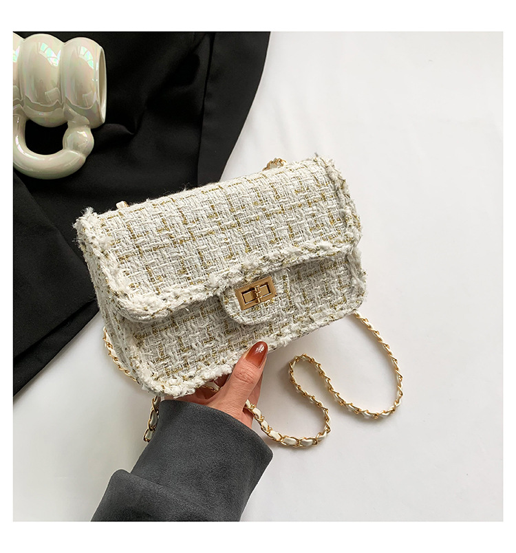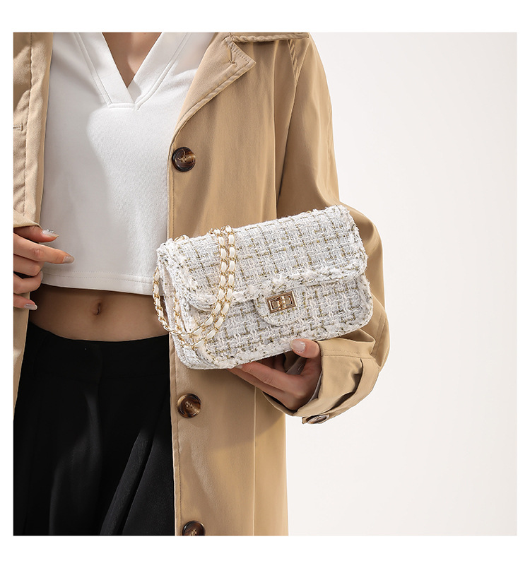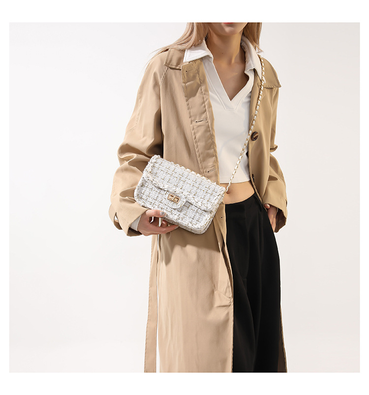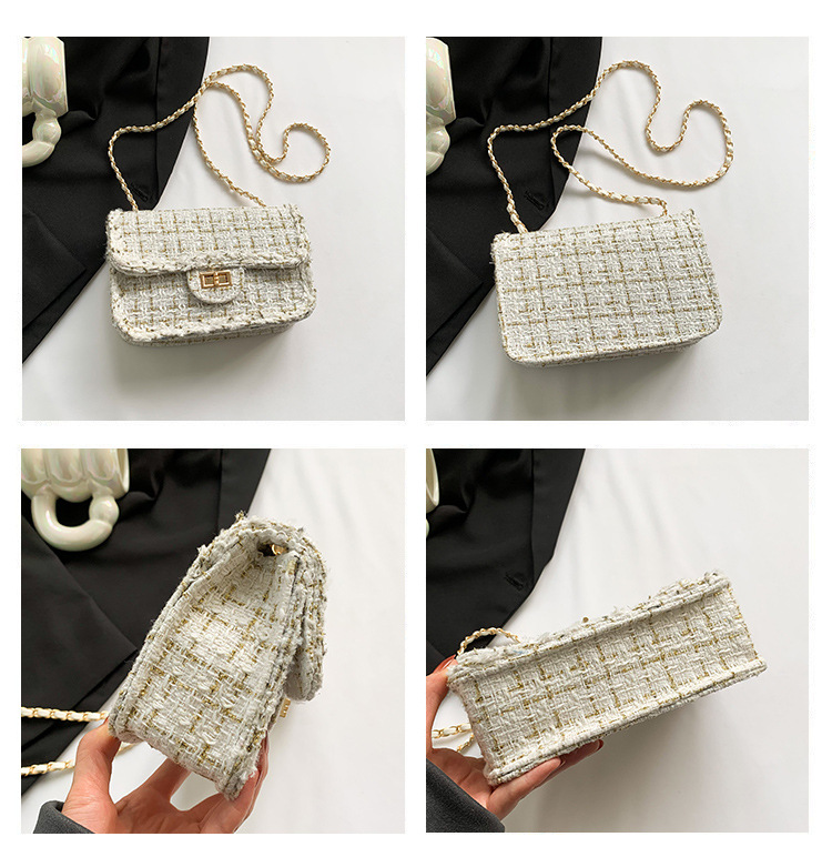 織り込み風ファッション、小香風春夏ウールチェーンバッグ、女性用2025年新作、シングルショルダー斜め掛けバッグ、小さめスクエアバッグ