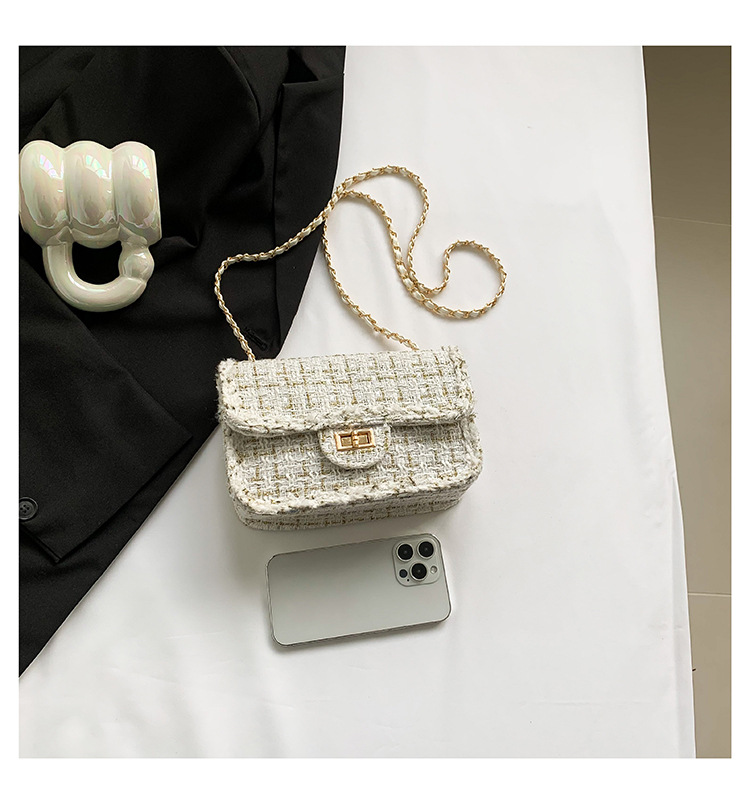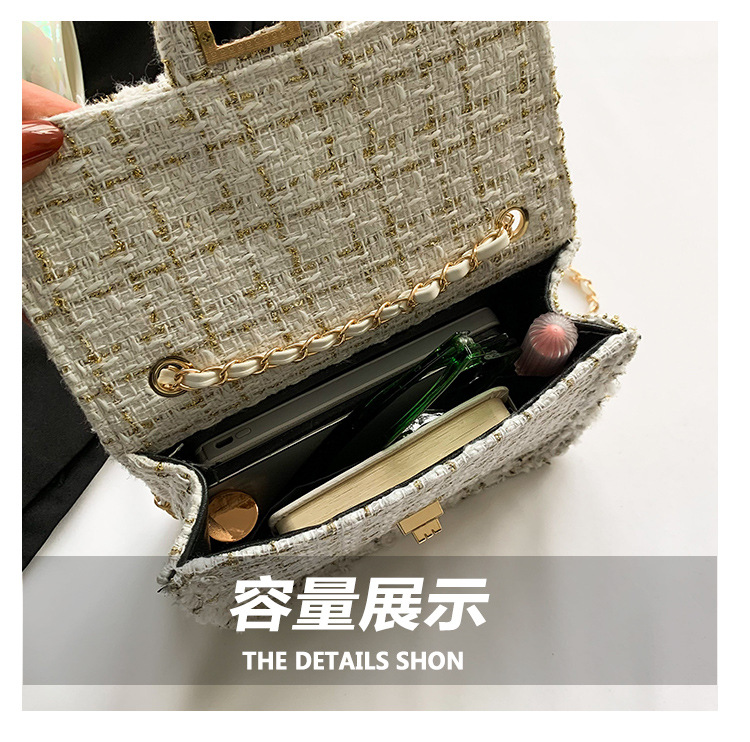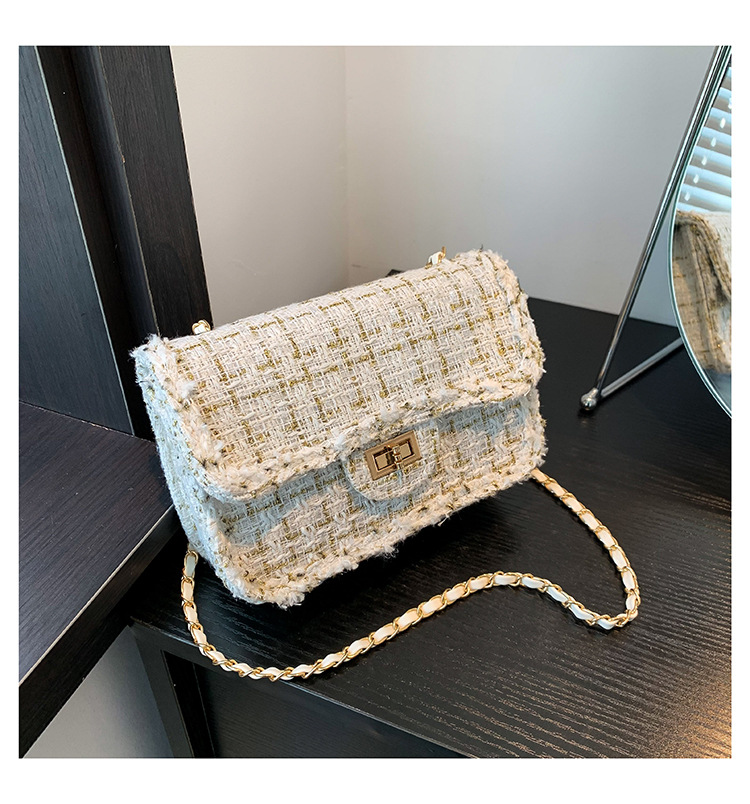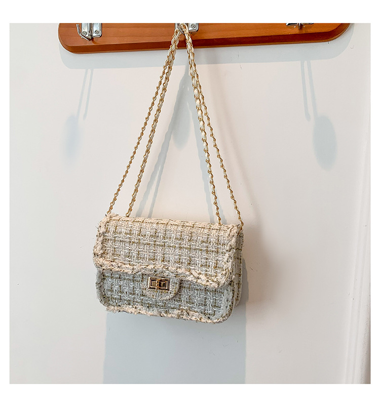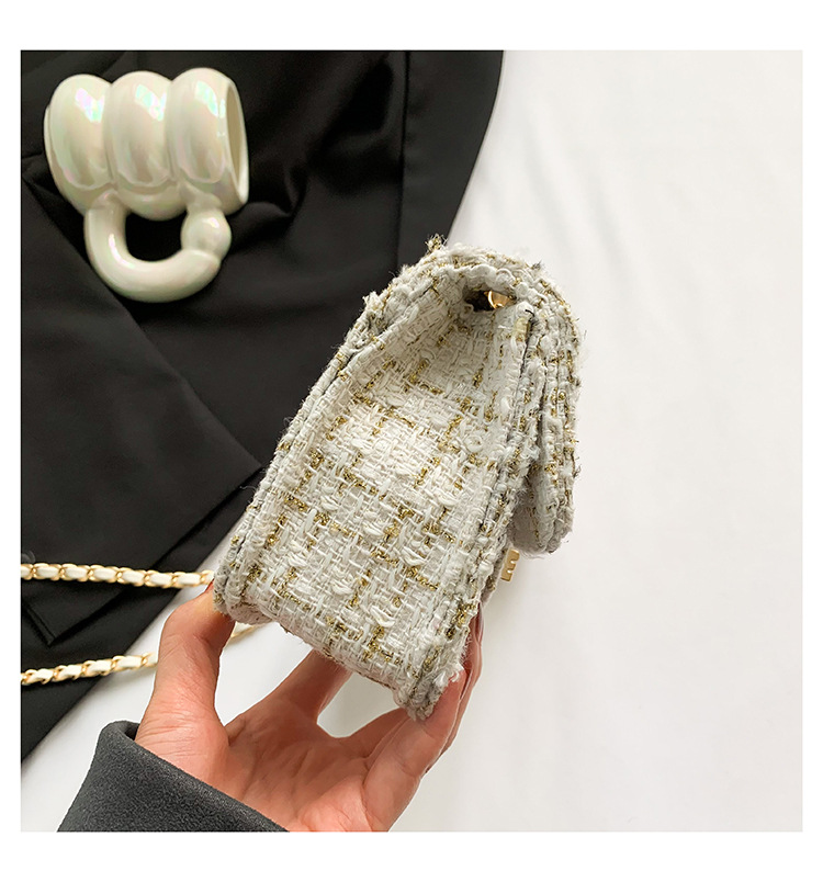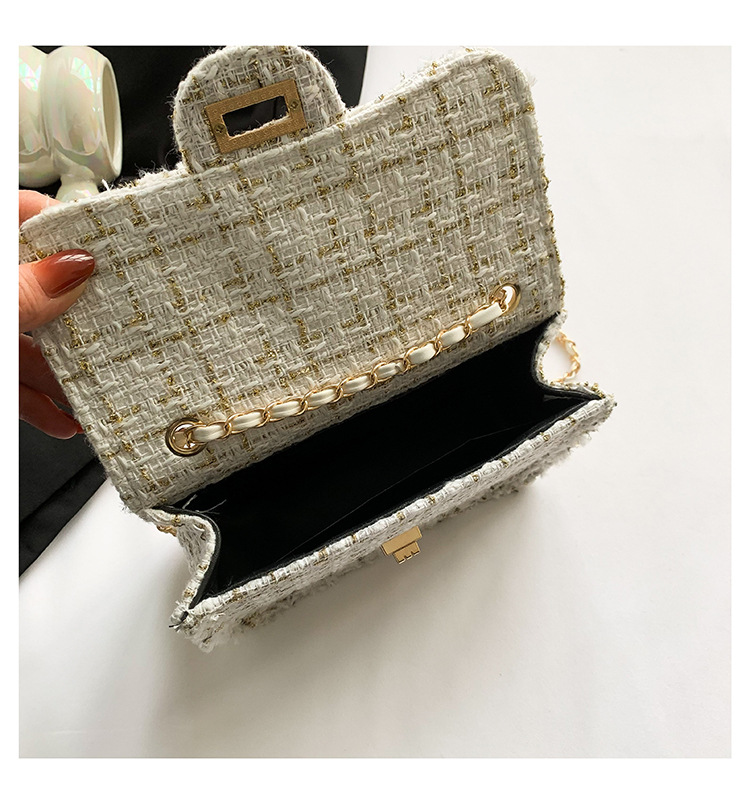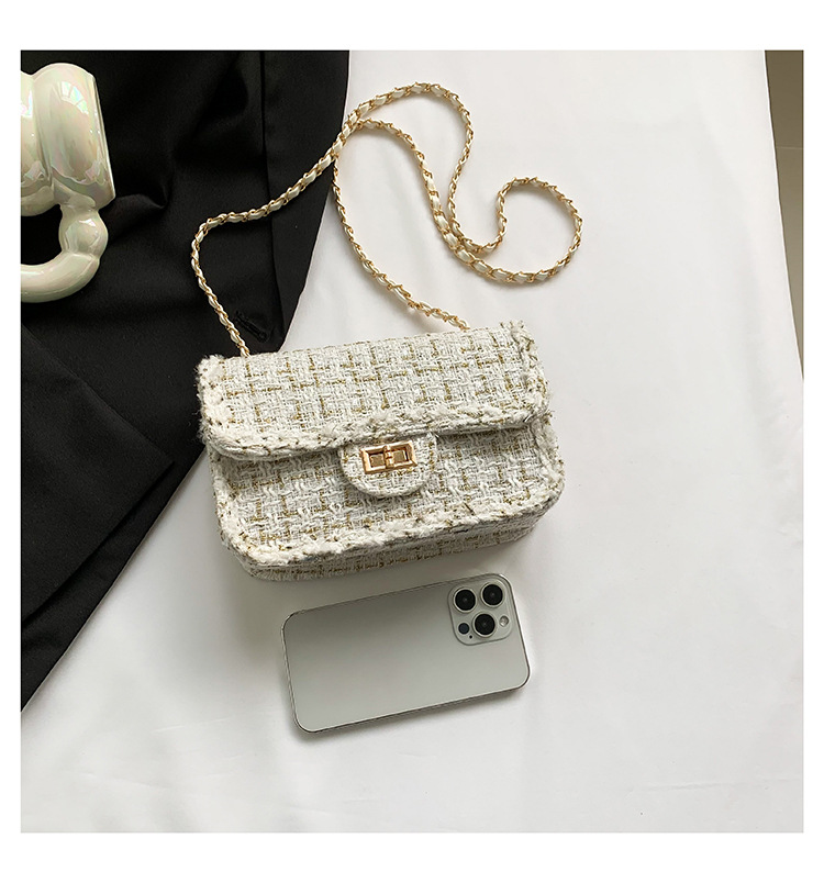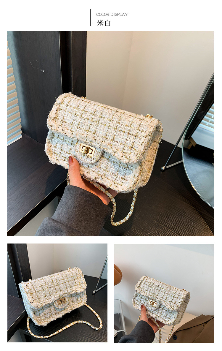 織り込み風ファッション、小香風春夏ウールチェーンバッグ、女性用2025年新作、シングルショルダー斜め掛けバッグ、小さめスクエアバッグ