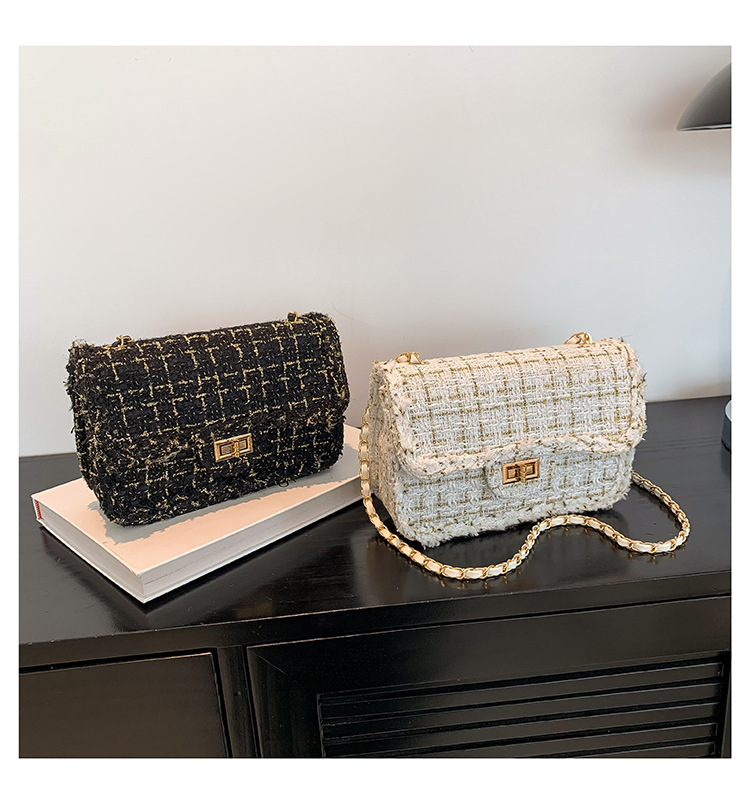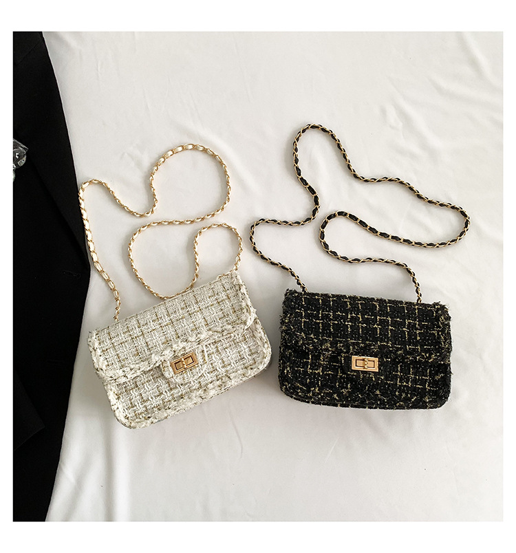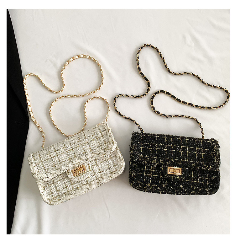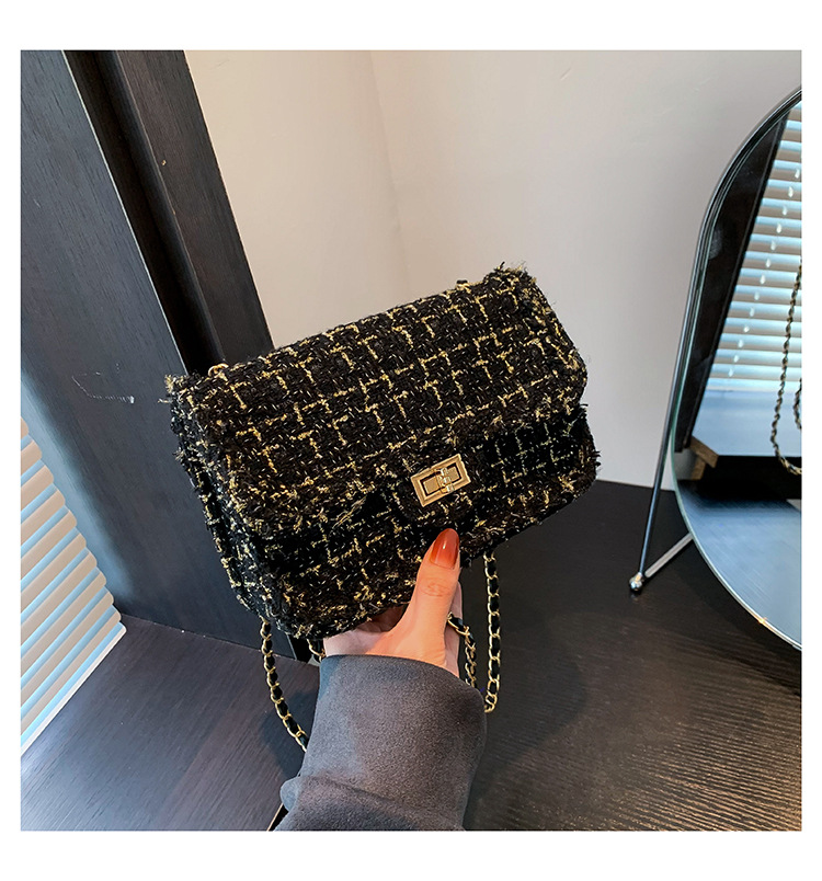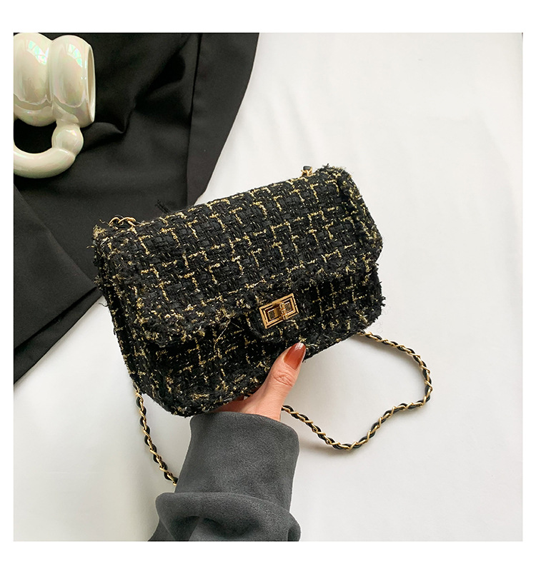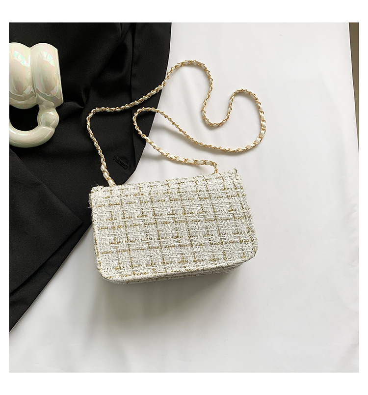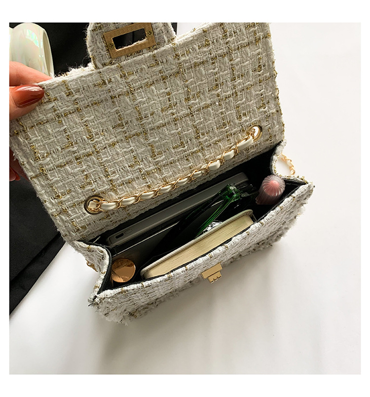 織り込み風ファッション、小香風春夏ウールチェーンバッグ、女性用2025年新作、シングルショルダー斜め掛けバッグ、小さめスクエアバッグ
