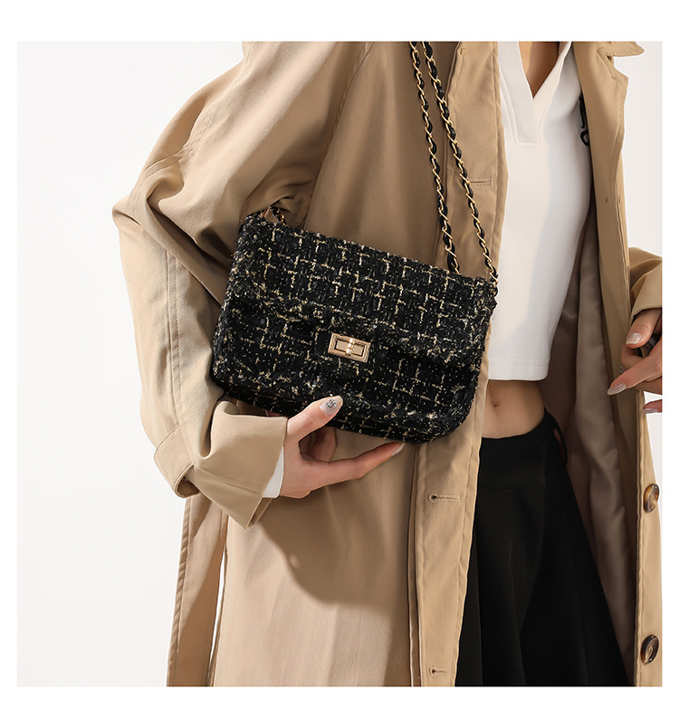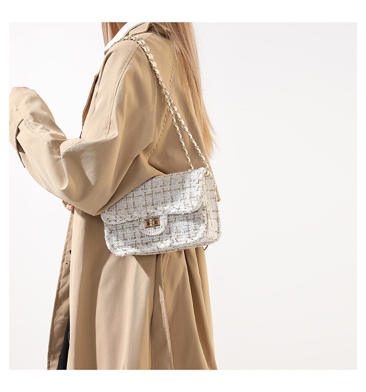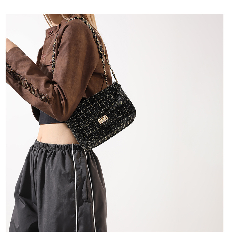 2025年春秋新作女性脇下包み小香風ラシャチェーン包み高級感ワンショルダー斜め掛け小角包み