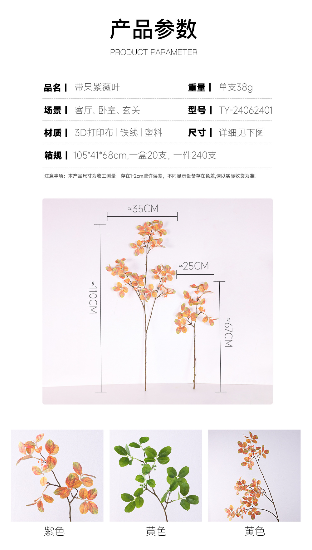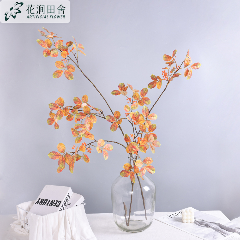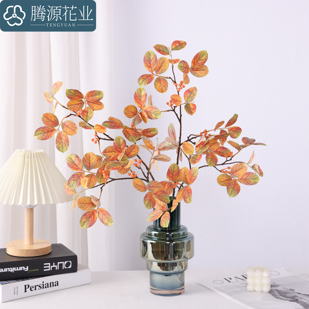 仿真绿植 紫薇叶带果 秋色家居婚庆酒店软装饰工程北欧植物假树叶