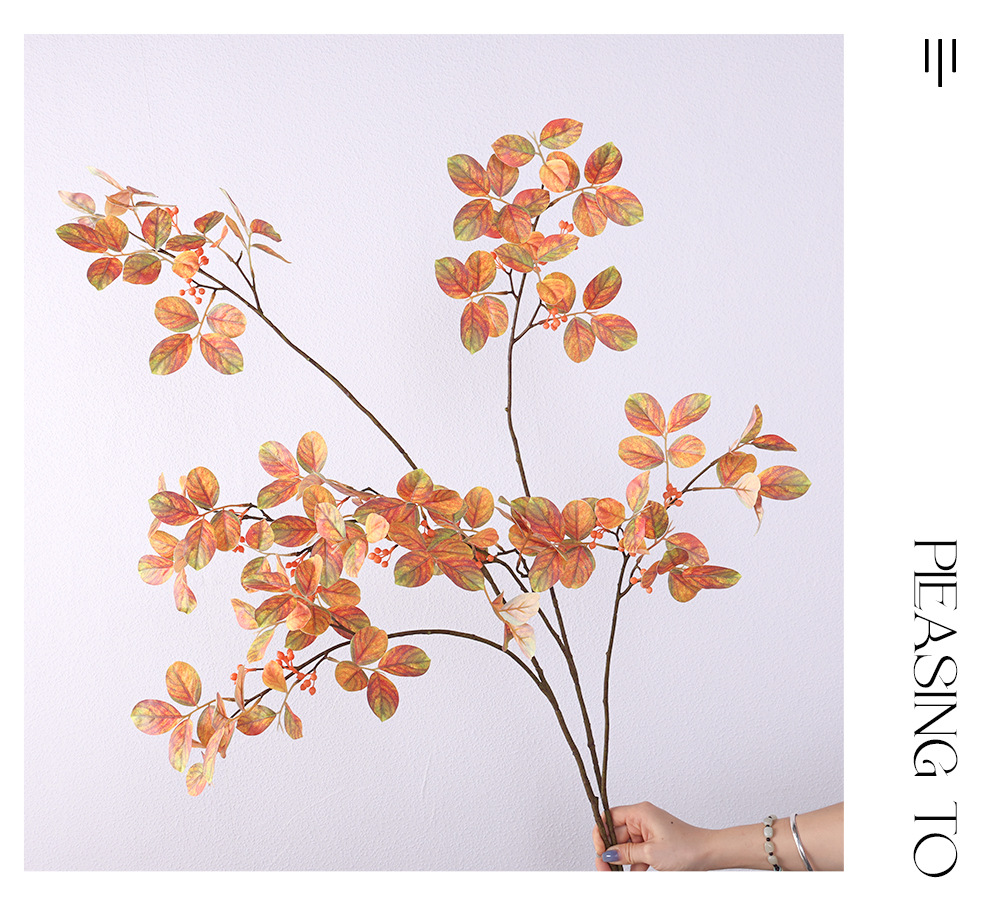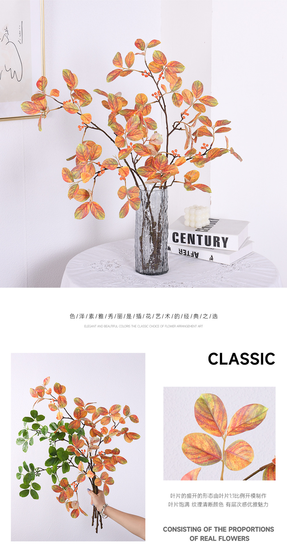仿真植物 紫薇叶 长枝带果秋色家居酒店软装饰婚庆摆件布景假树叶