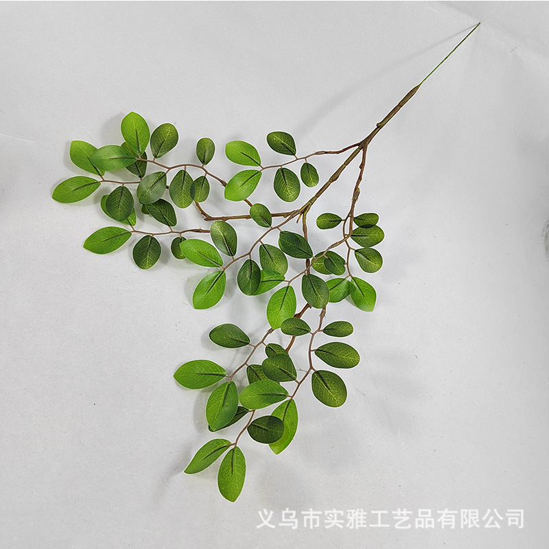 跨境专供ins仿真桉树叶手感胶叶红继木树枝室内植物软装造景叶材