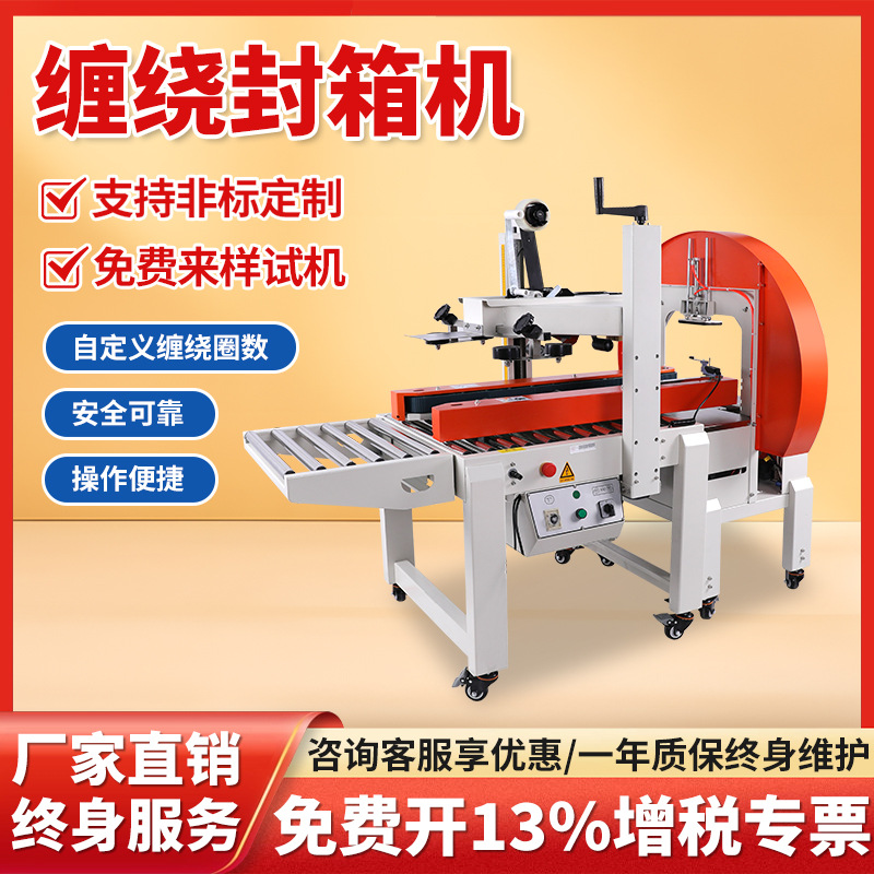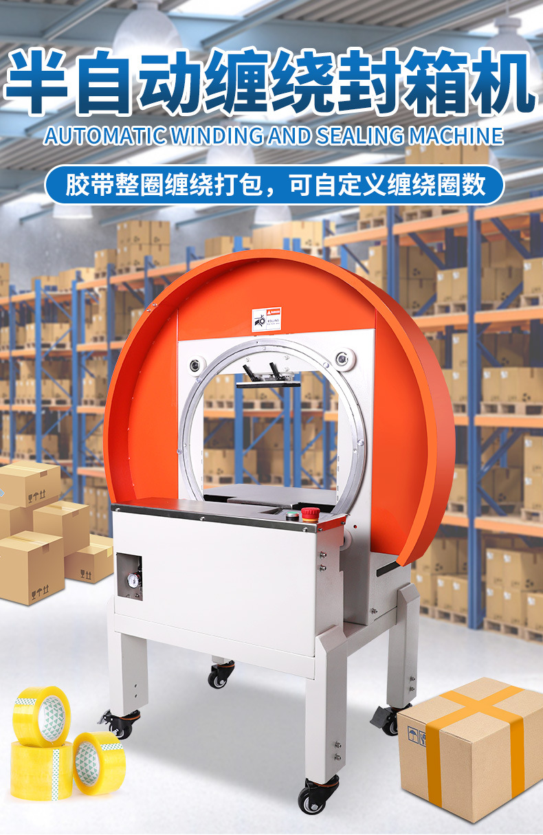 小型テープ巻き付け機 横型全巻テープ巻き付け 段ボール箱シール 透明テープ 電子商取引・宅配包装機