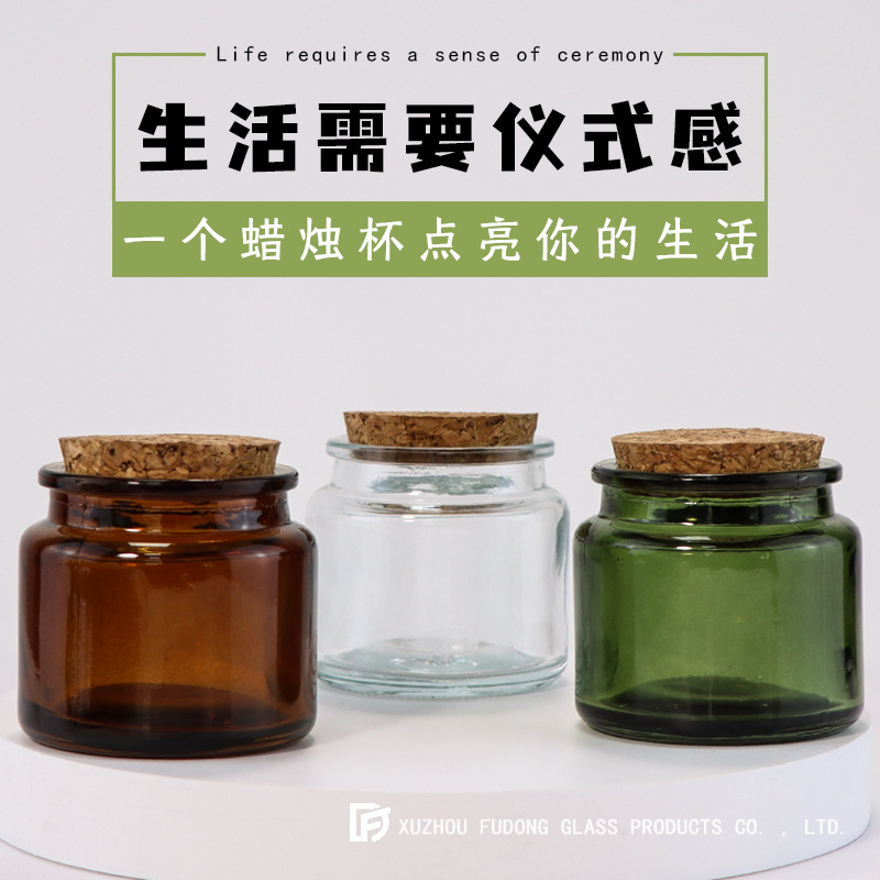 ガラスのろうそくの杯の復古的な茶色の香薫の杯の空の瓶の木の栓の透明なろうそくの台の杯のDIYの空の杯のお土産の置物