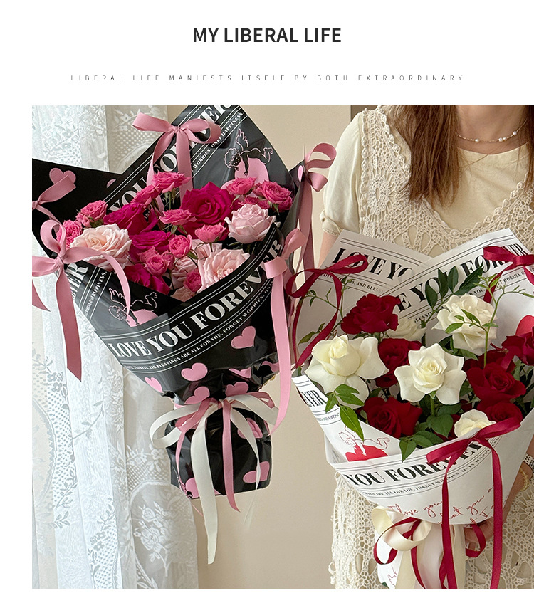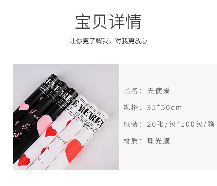 七夕バレンタイン天使爱生花包装纸パールフィルムプラスチックopp防水高级感手作りdiy资材