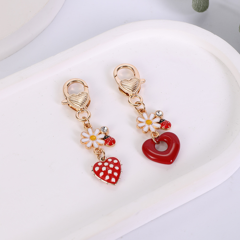 国境を越えた新しいバレンタインデーシリーズピンク滴油合金LOVE愛薔薇キーホルダー卸売り